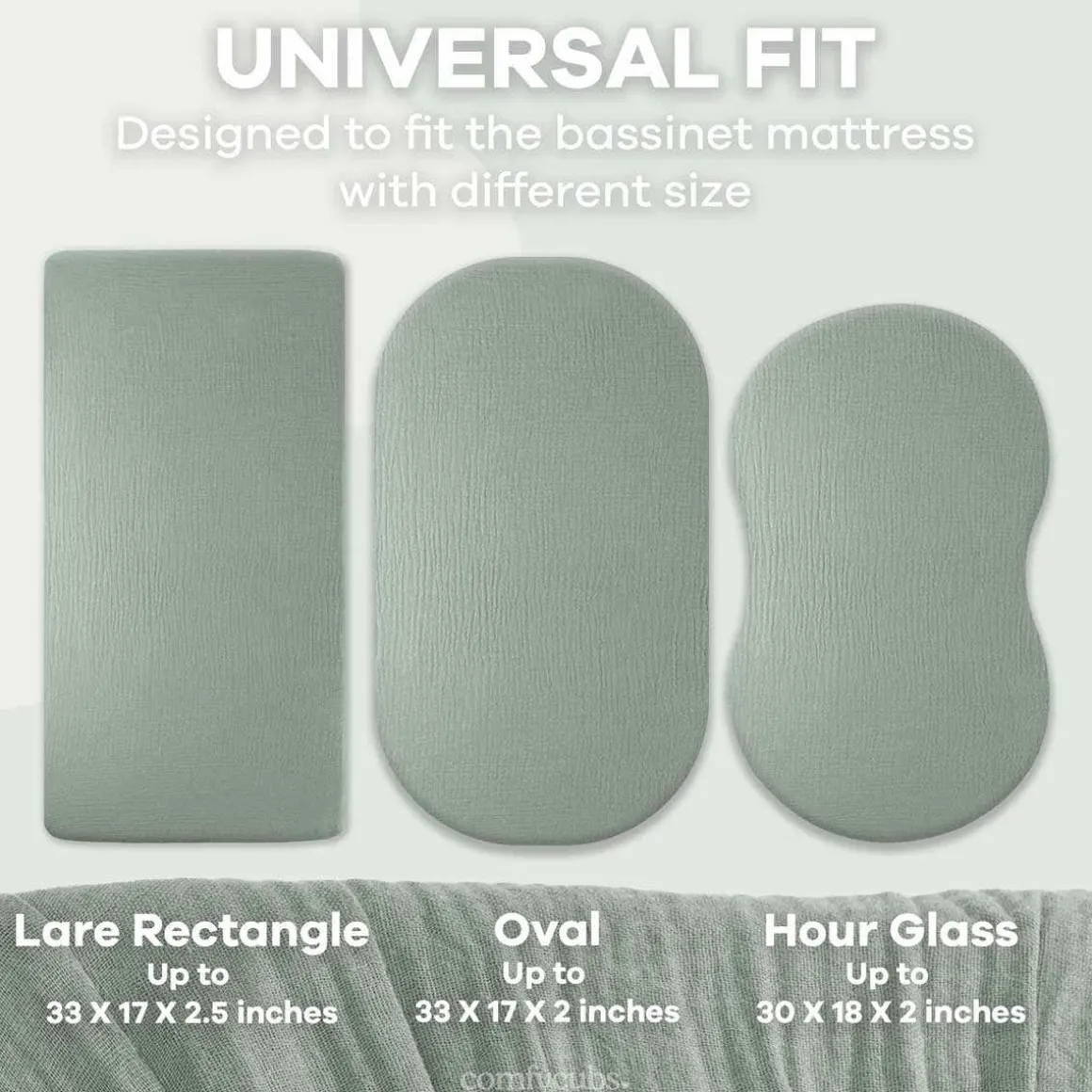 - Universal Fit for All Bassinet Shapes: Uniquely designed for versatility, this sheet fits all bassinet mattress shapes, including large rectangle, oval, and hourglass configurations. The adaptable design guarantees a snug fit, making it suitable for a wide range of bassinet styles.