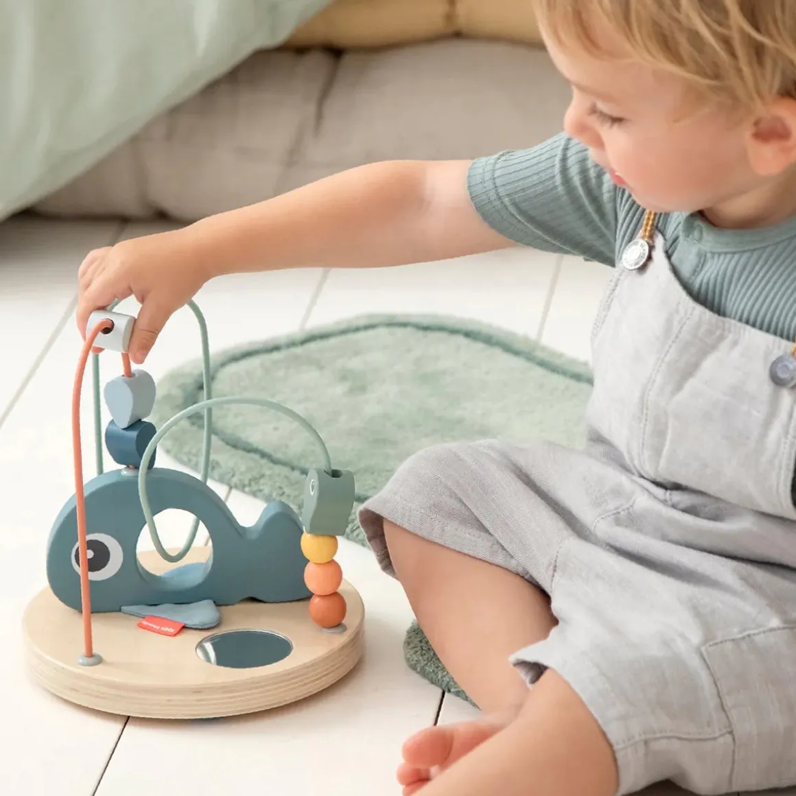 With the wooden Wally bead maze your child can practice fine motor skills and pincer grip while moving the small beads and fish from one end to the other. The whale and the sea elements inspire your child to be curious about life underwater.