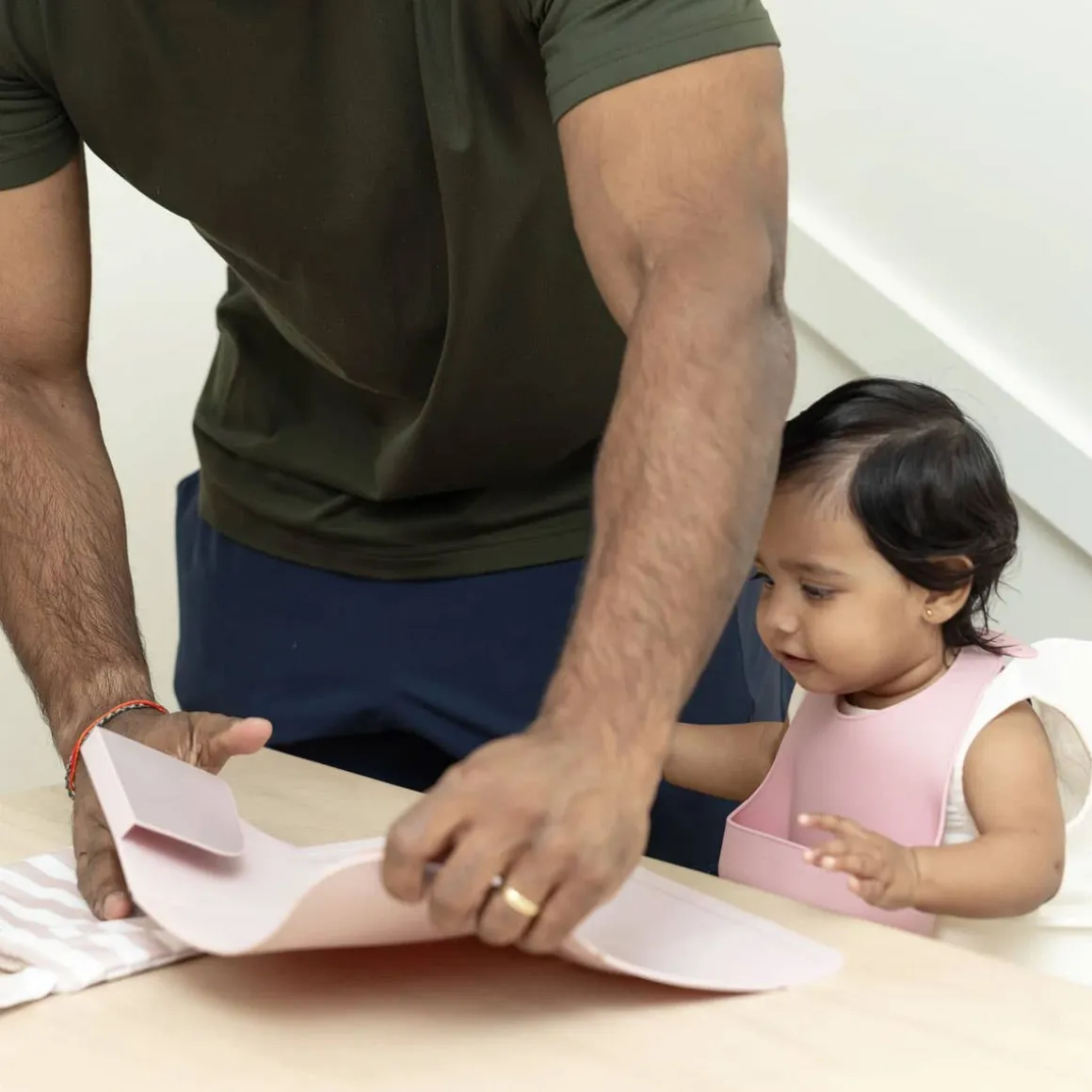 One set includes everything you need: beginner bib, placemat, and wet bag.