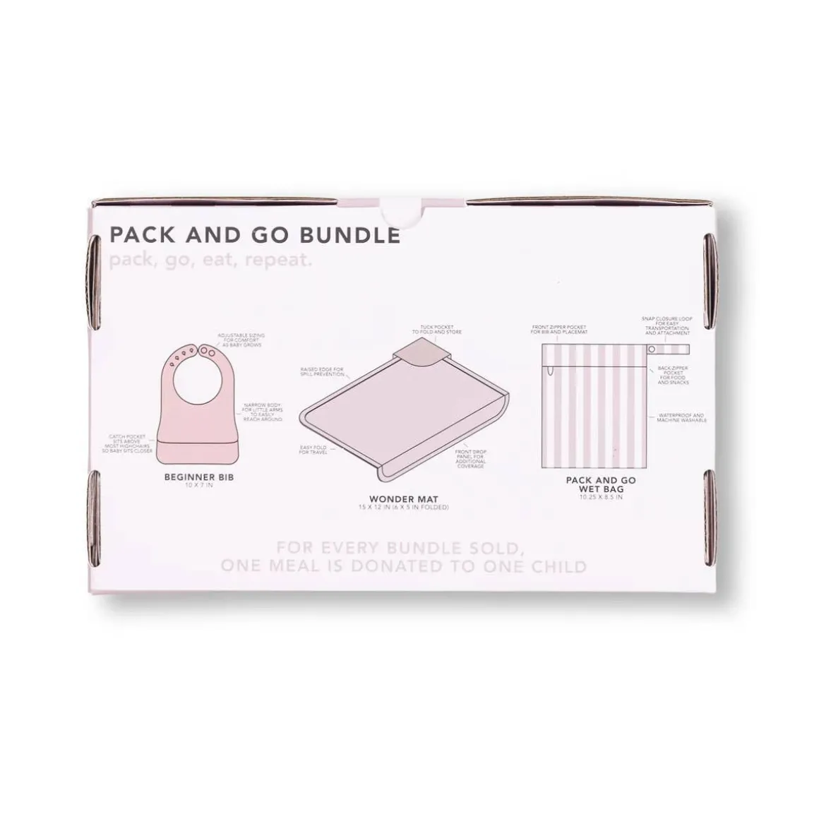 Pack, go, eat, repeat! Introducing the expert-approved toolkit of mealtime essentials to take on-the-go! This set is the perfect new baby gift and a parent must-have. Is that mess going to be for here or to-go? Just pack up the bib and placemat in the on-the-go bag, throw in some snacks and meals can happen anywhere.