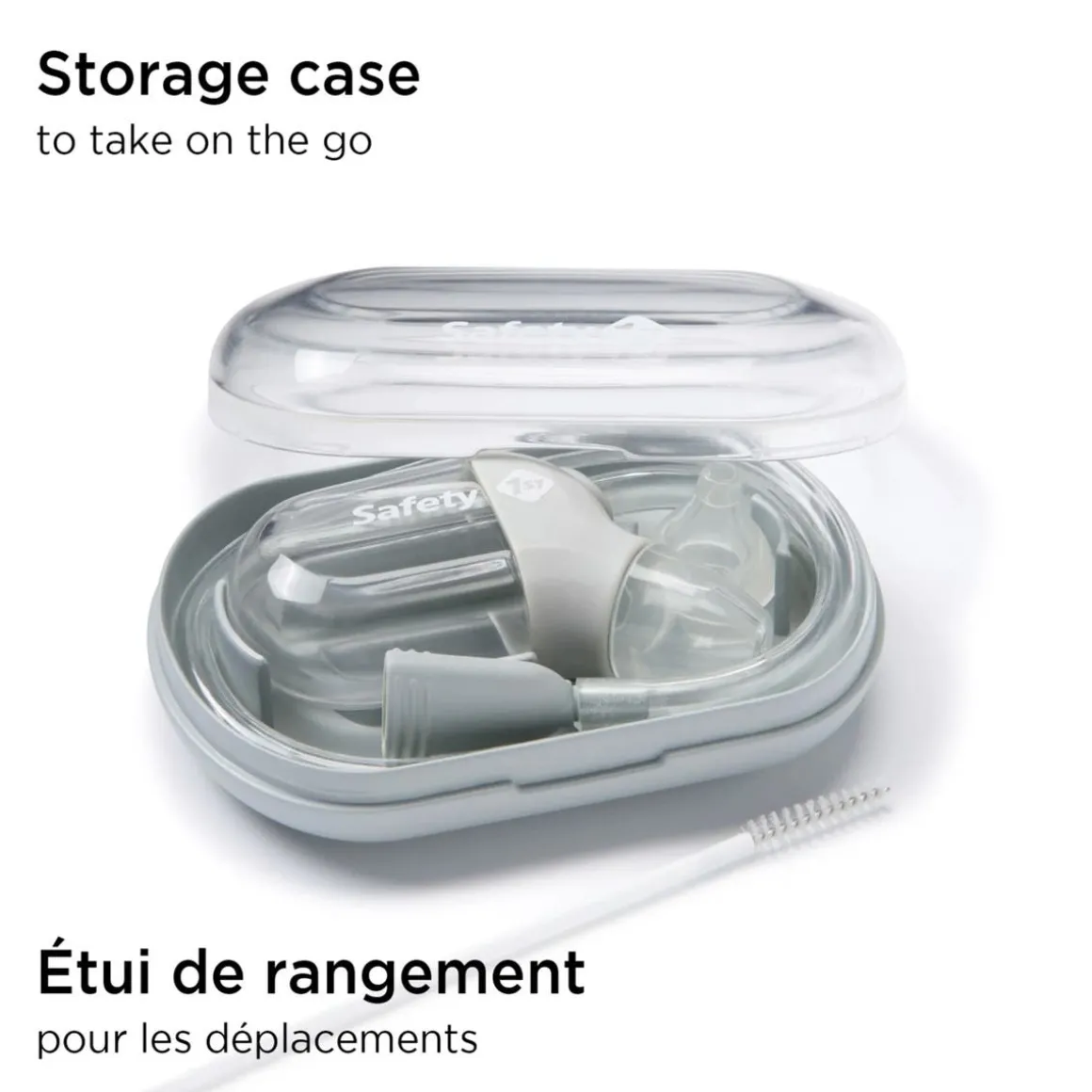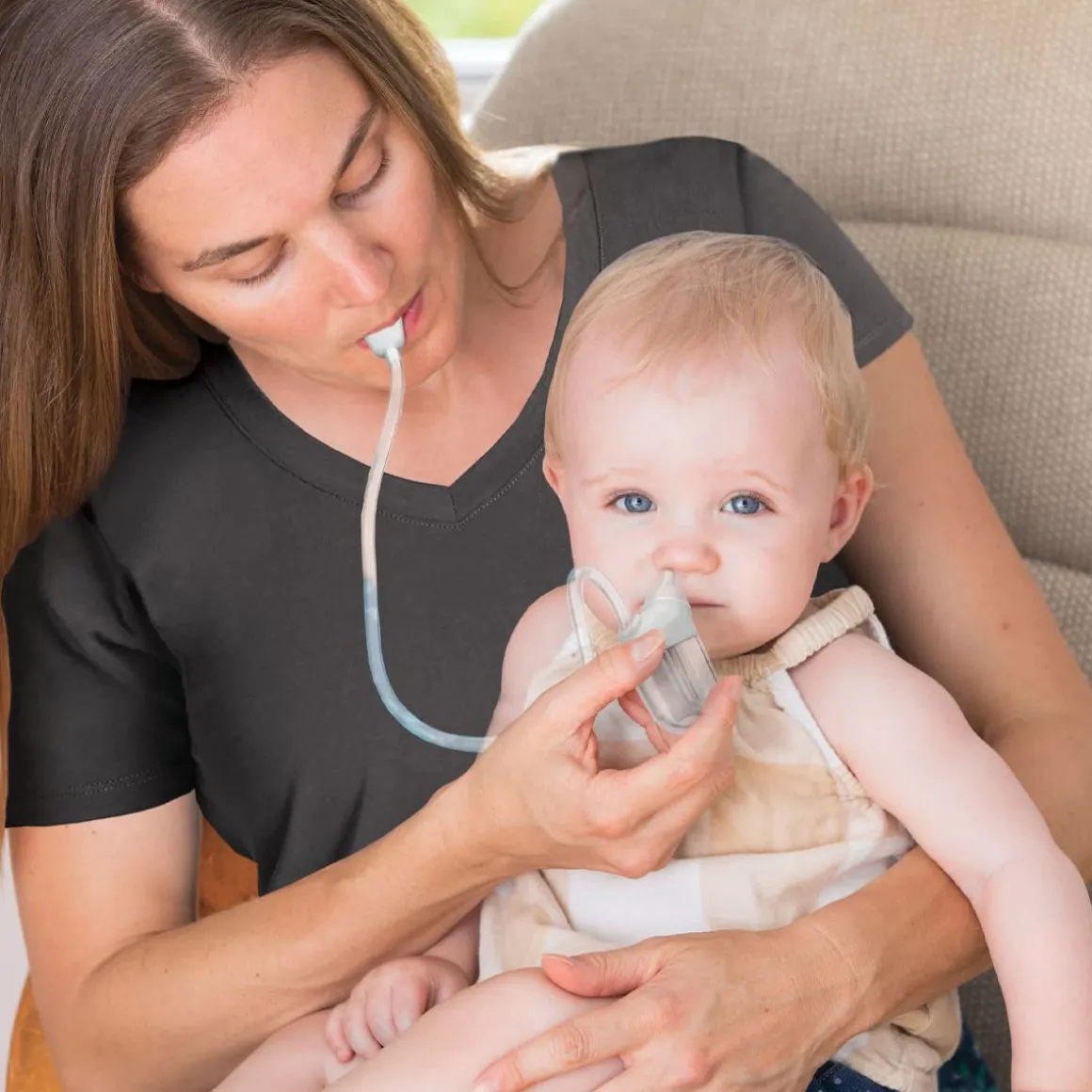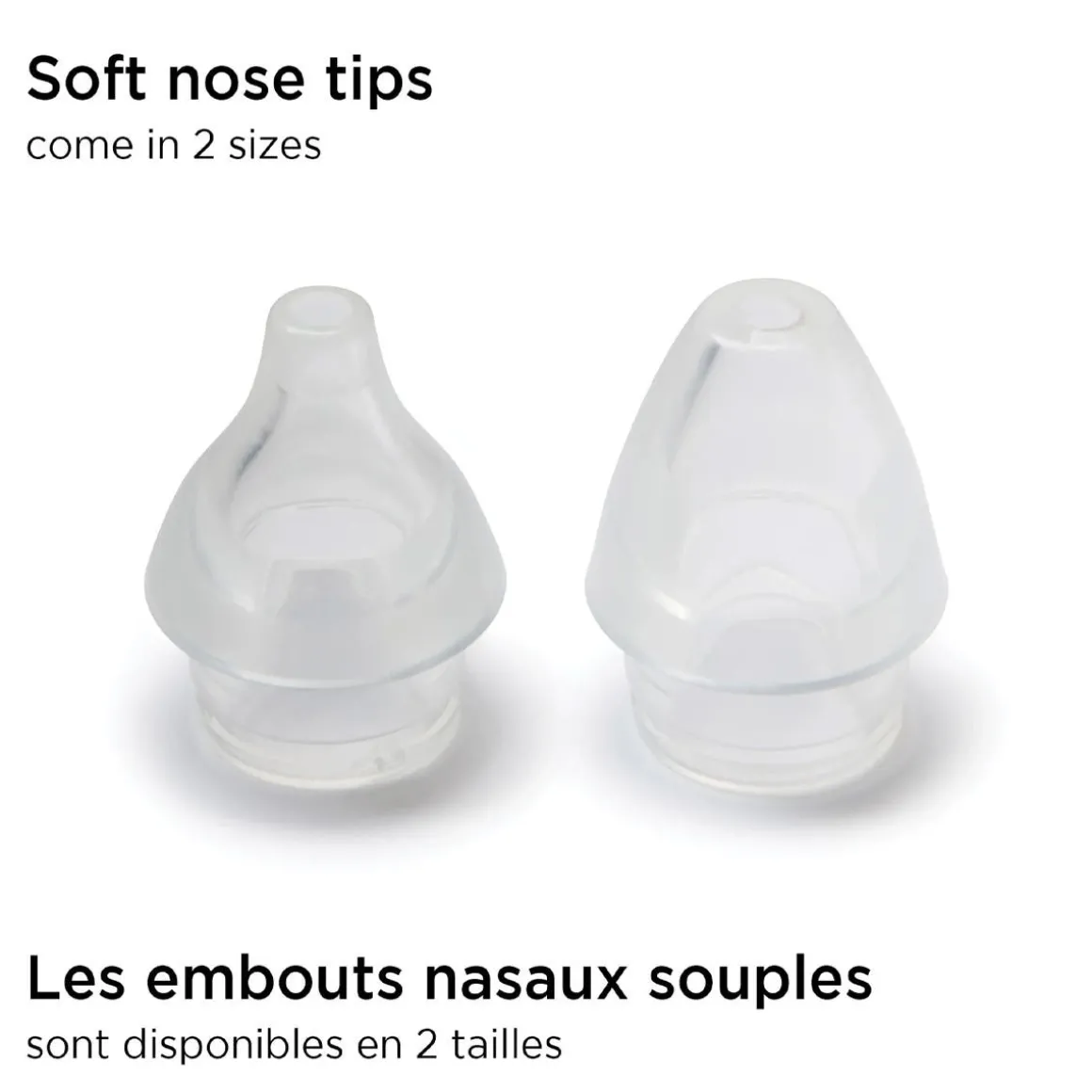 The soft, gentle nose tips come in two different sizes, so you can continue to use the BoogEase Nasal Aspirator as your baby grows.