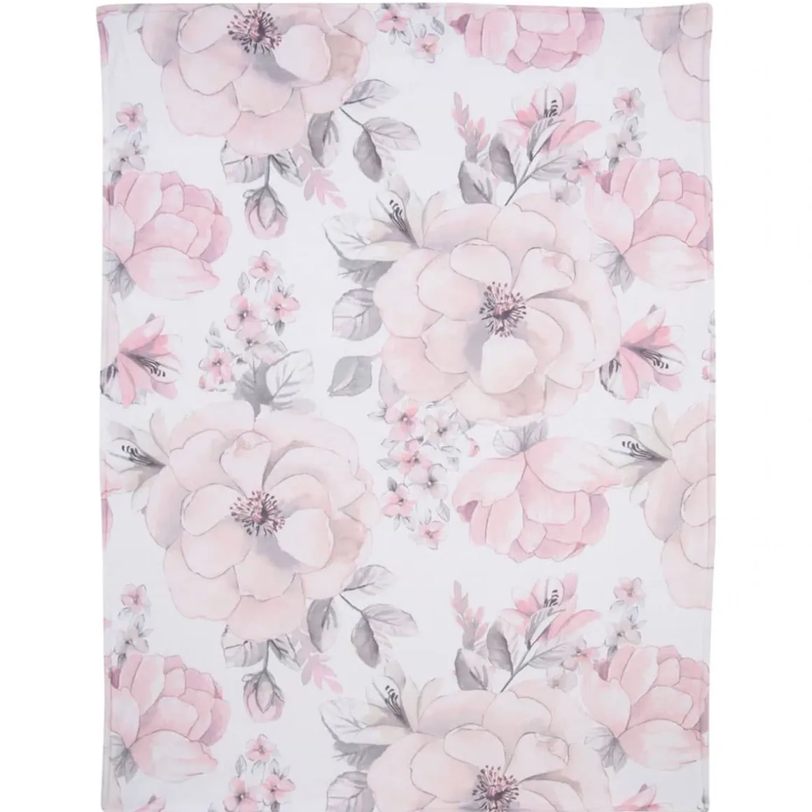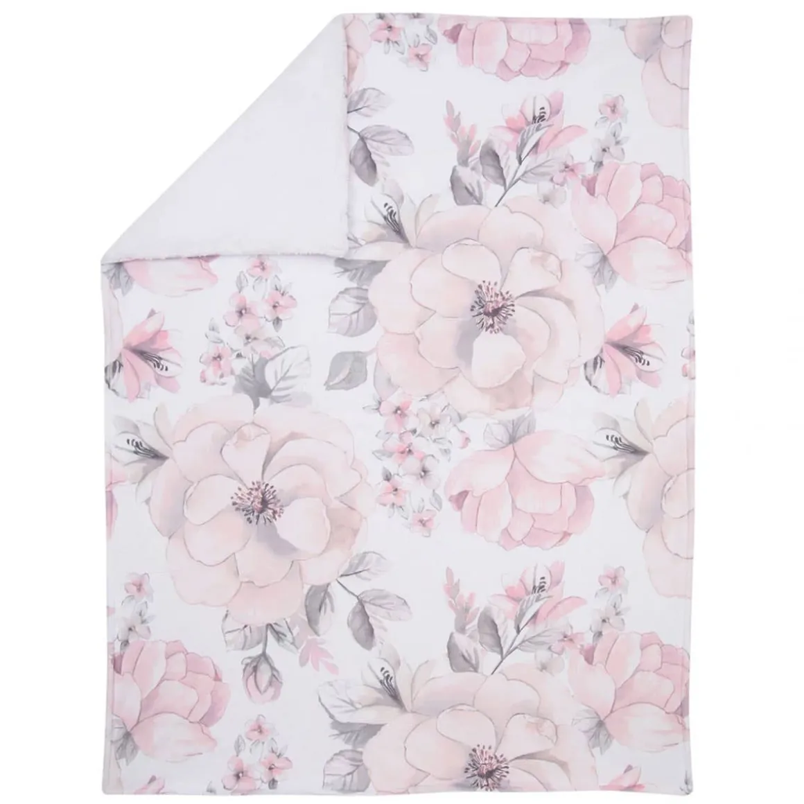 This lovely minky front sherpa back fleece baby blanket will wrap your little one in total luxury. Pretty pink and gray watercolor flowers decorate the front, and the back is a soft to the touch white Sherpa. Sized at 30” X 40” it is the perfect stroller blanket. It is ideal for trips to the park, running errands, and is great for moms and little ones on the go. It is machine washable for easy care.