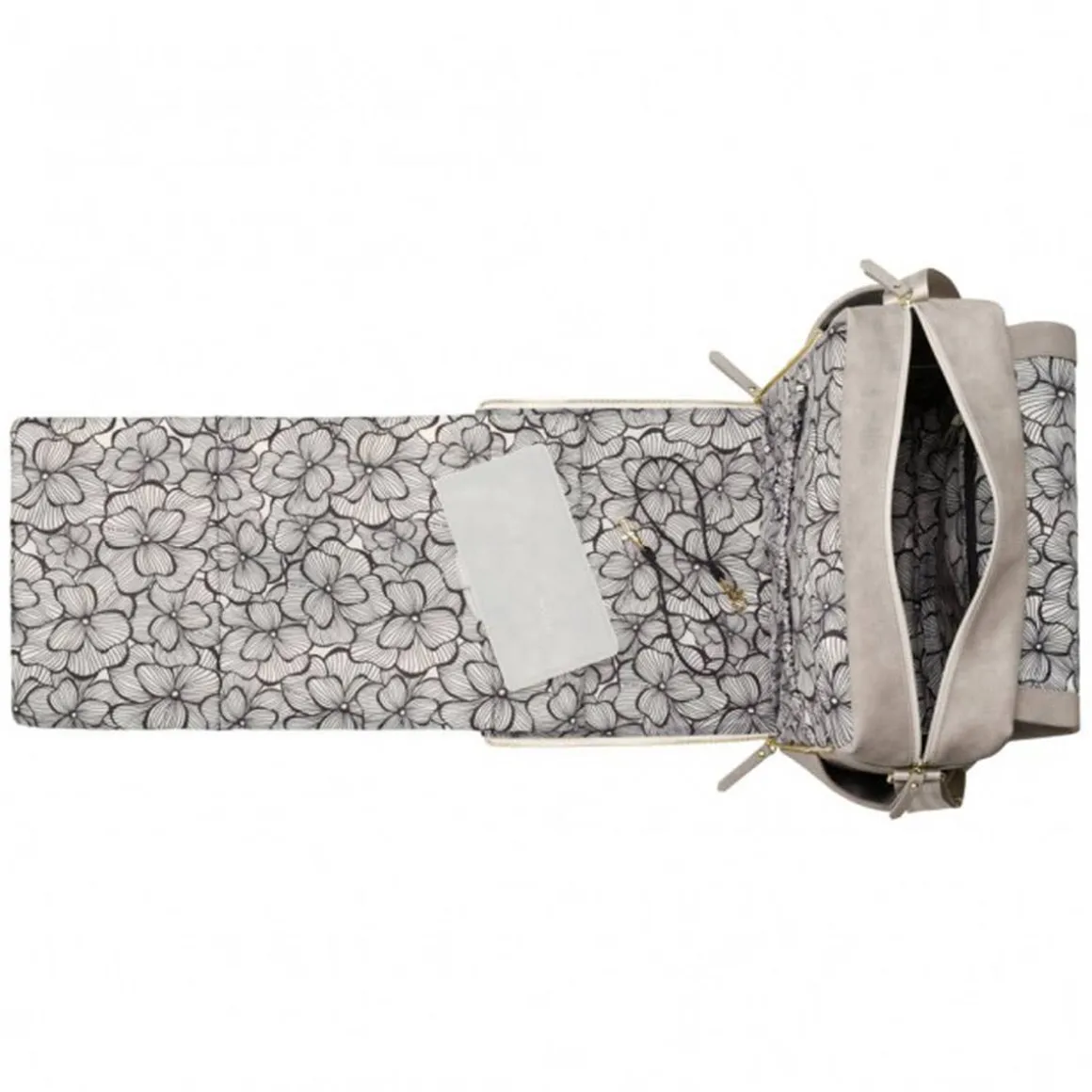 - Zip-out diaper changing station for baby with removable changing pad and pockets for diapers and wipes