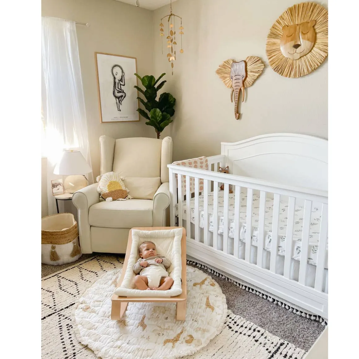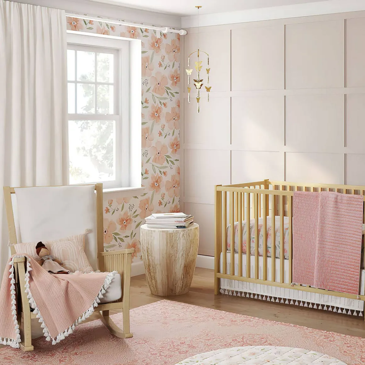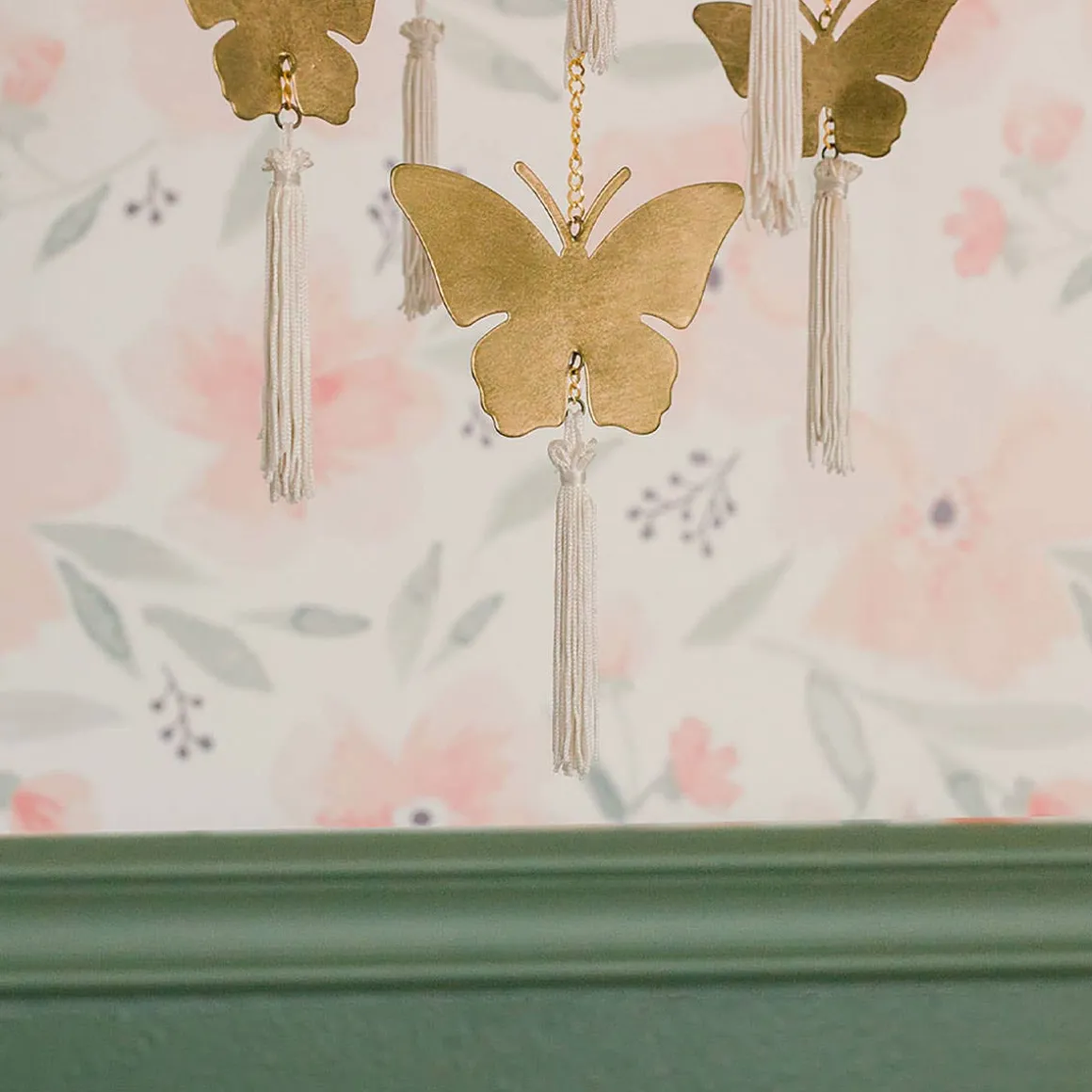 This nature inspired brass ceiling hanging decor will be the perfect charming touch to baby’s nursery. This handcrafted piece brings a charming feel to your nursery while helping to captivate baby’s attention as they play and learn in their space. Pair this gorgeous nursery decor with our Crane Baby bedding sets, for a perfectly curated look.