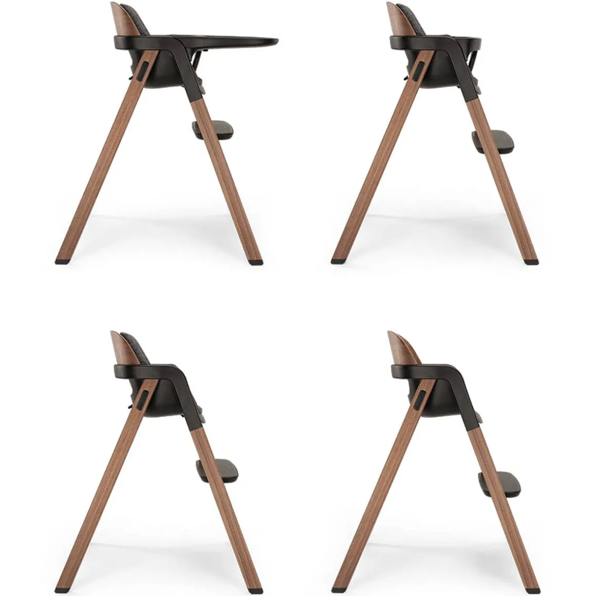 - Meticulously crafted to blend naturally with the contemporary family home. Wooden leg and backrest accents create a perfect balance of style and warmth. Each high chair presents an organically unique wood grain and hue, making makes it a one-of-a-kind statement piece.