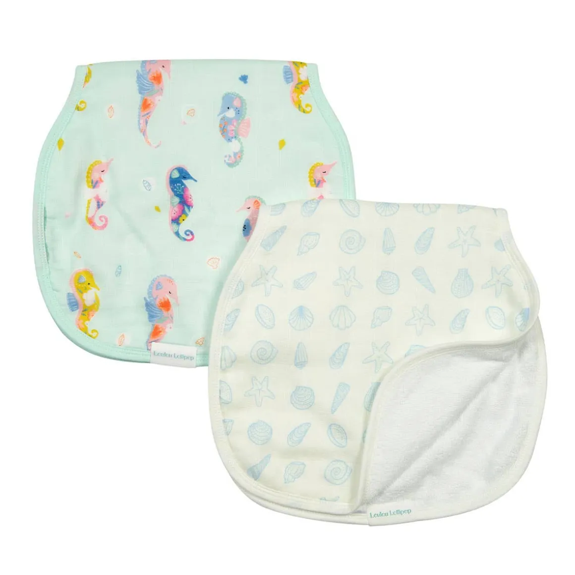 Soft and absorbent for playful smiles and spills. This incredibly soft Burp Cloth 2-piece set, crafted from the softest muslin, with absorbent terry cloth backing to withstand dribbles and spit-ups, Soft, practical. and featuring beautiful hand-crafted prints, these are a must-have in any parents’ diaper bag.