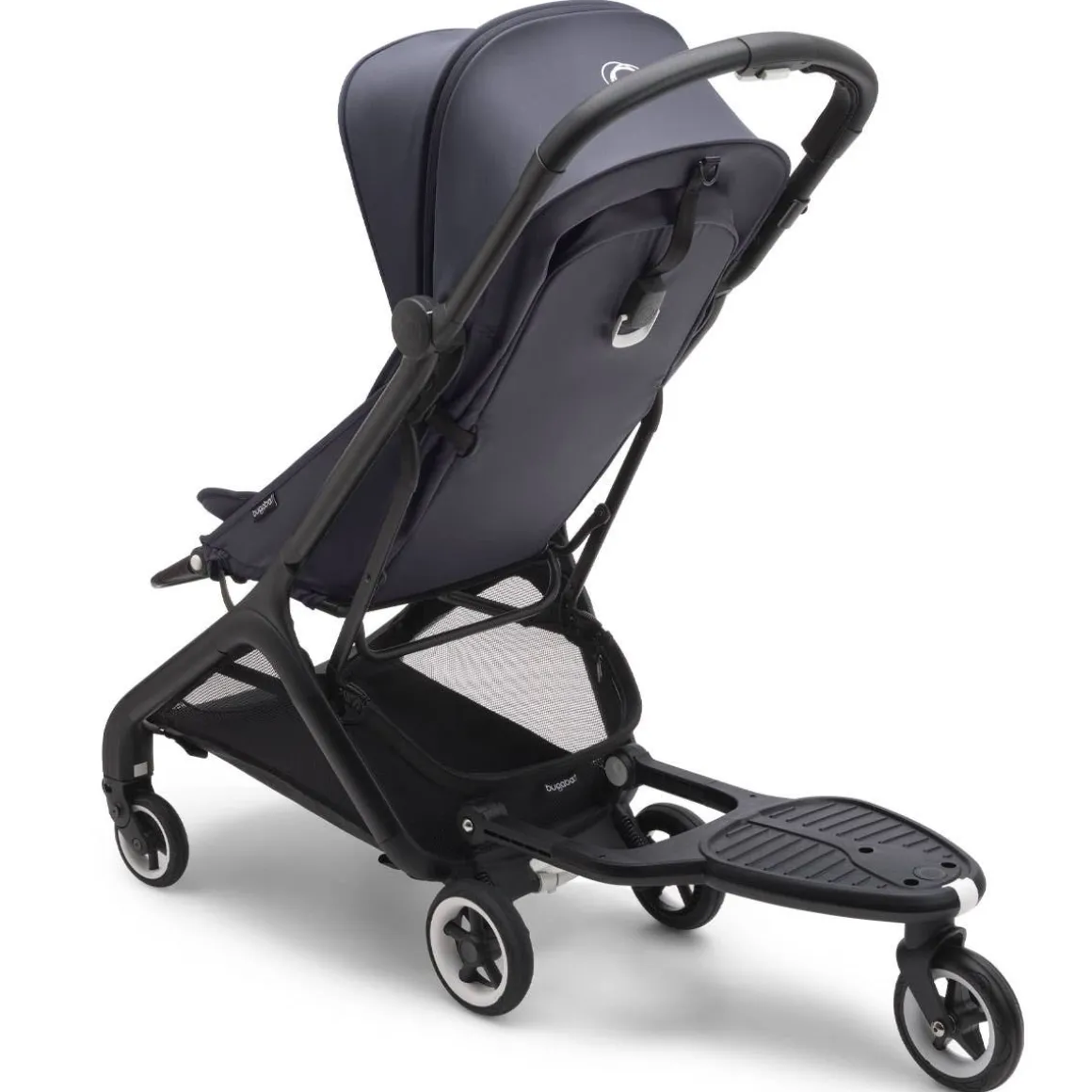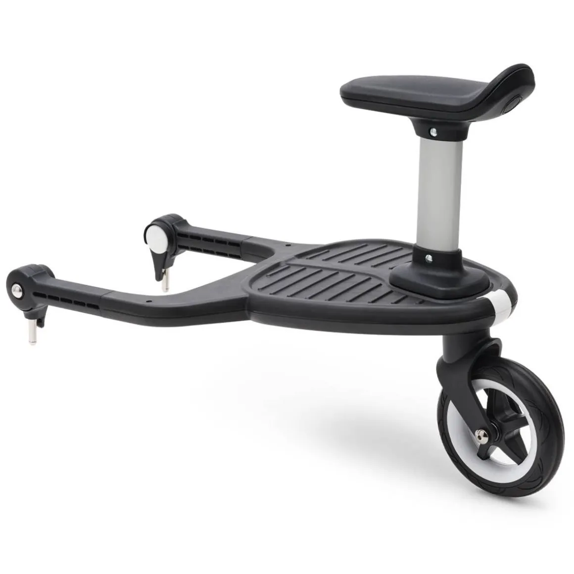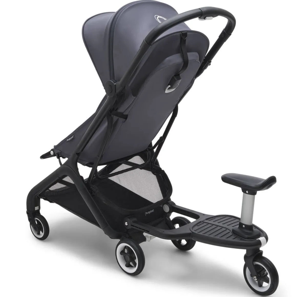 - Toddler can sit or stand on the Bugaboo comfort wheeled board, and the removable saddle can be clicked off to save space when not in use.