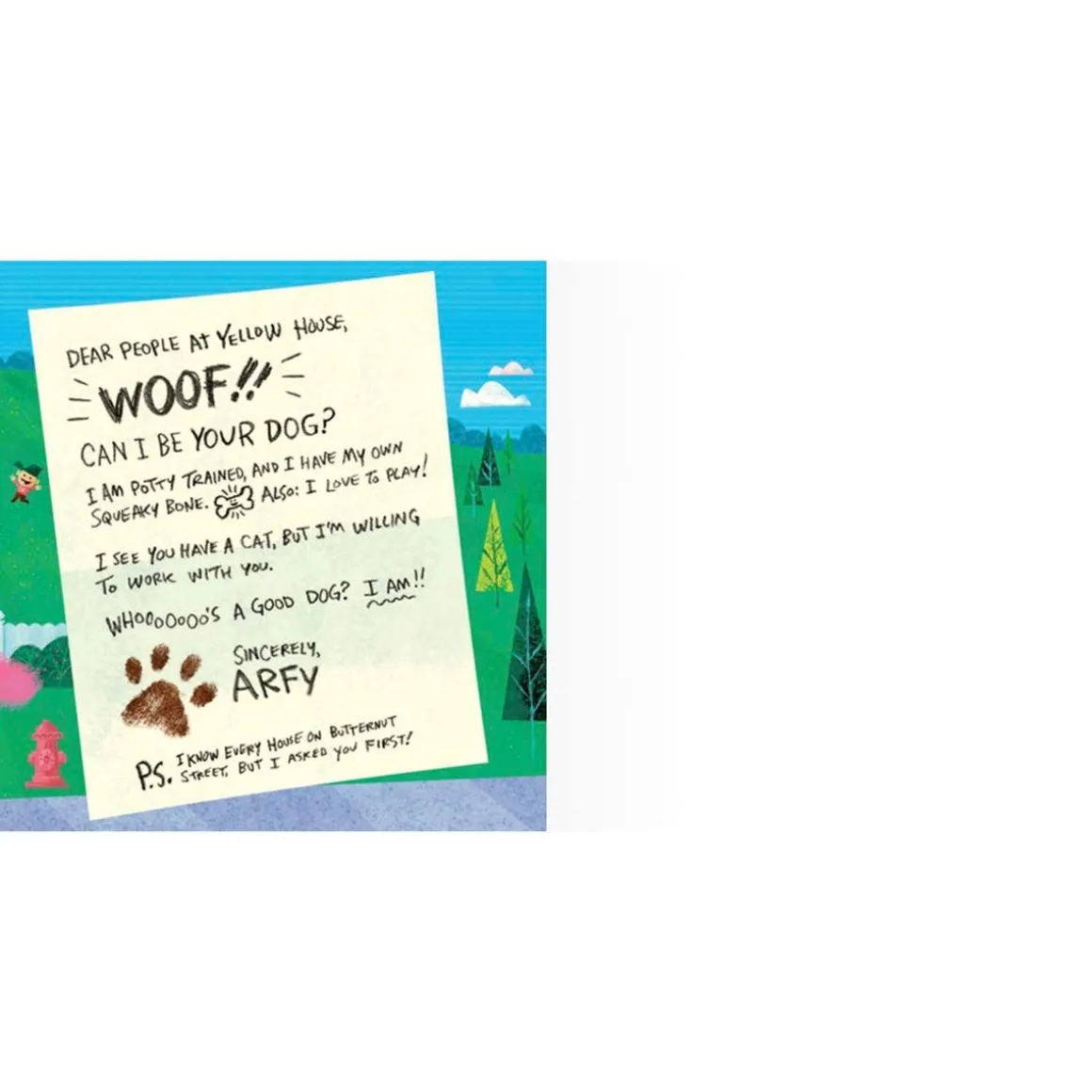 This picture book shares the tale of Arfy, a homeless mutt who lives in a box in an alley. Arfy writes to every person on Butternut Street about what a great pet he’d make. His letters to prospective owners share that he’s house broken! He has his own squeaky bone! He can learn to live with cats! But, no one wants him. Won’t anyone open their heart–and home–to a lonesome dog? Readers will be happily surprised to learn just who steps up to adopt Arfy.