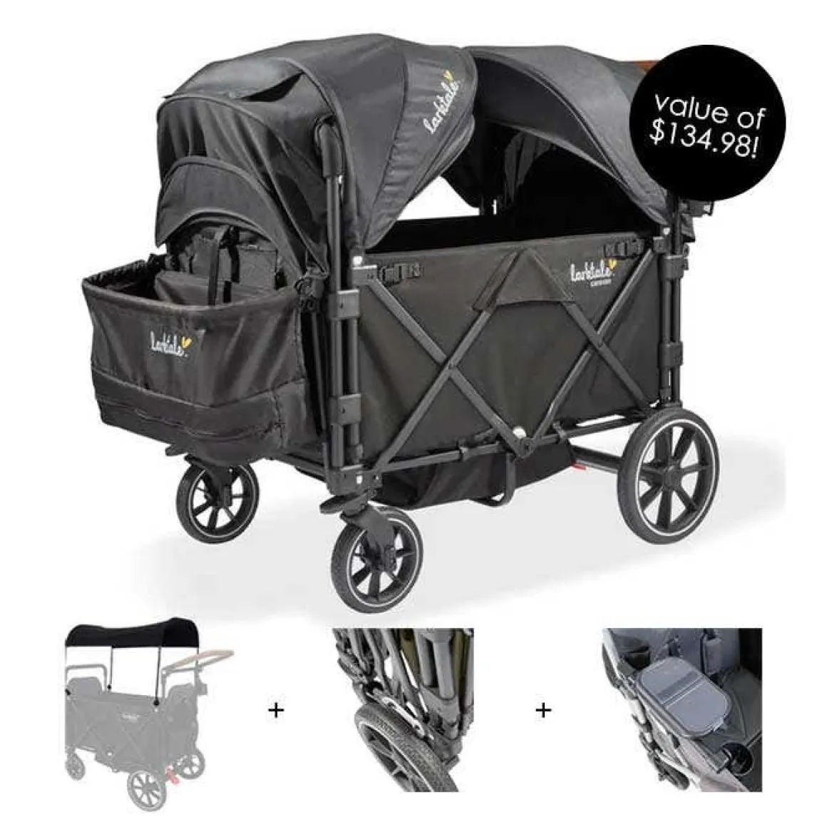 The Exclusive Caravan Stroller Wagon (V3) Bundle at West Coast Kids includes upgraded wheels, a Sun Topper and Snack Tray with a value of $134.98!