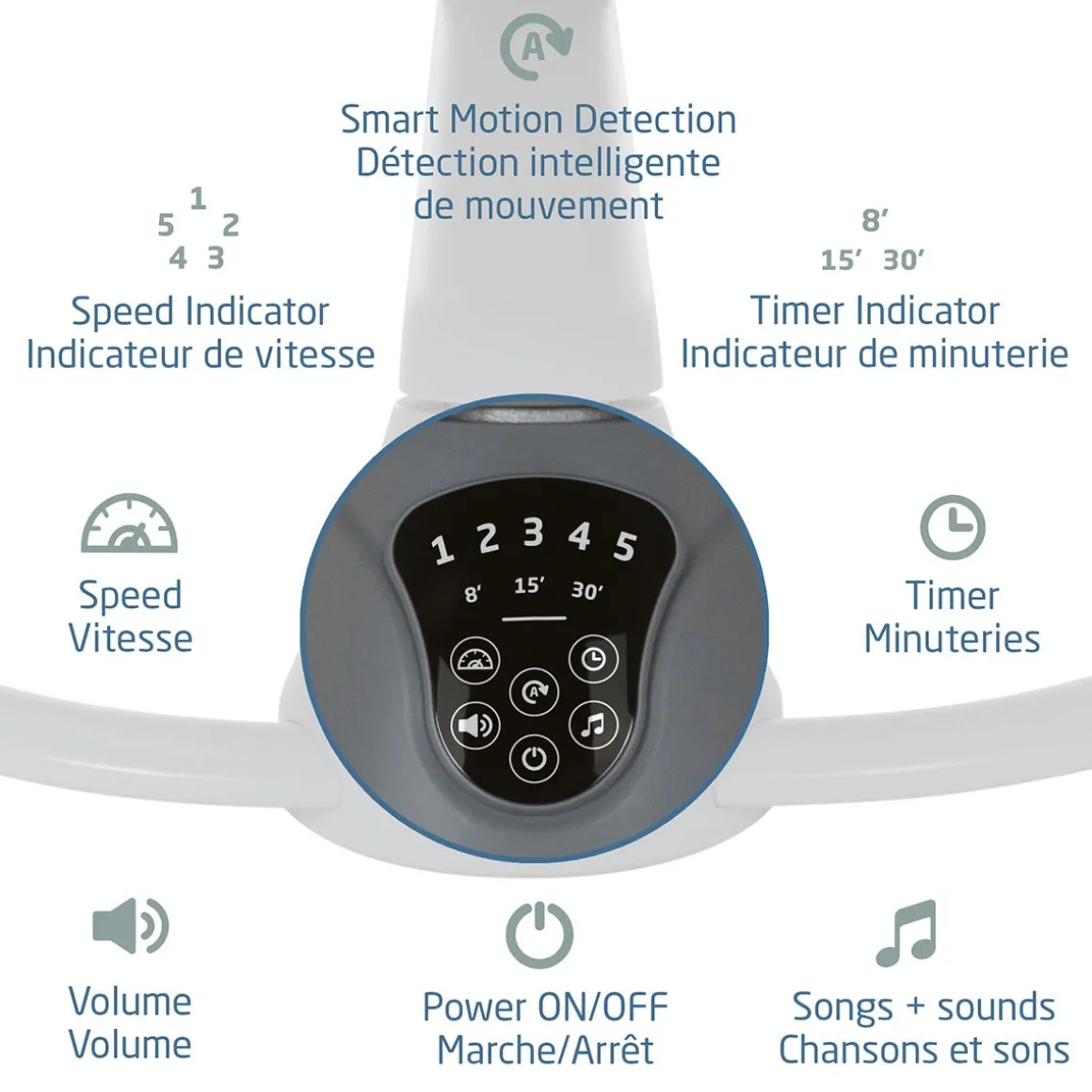 Provides extra comfort when needed This stylish swing has the beauty and the brains – just like you it instinctively knows when and how to rock your baby when they’re fussy, thanks to the automatic motion detector. The Cassia simply activates the swing when it recognizes your baby needs some extra comfort.