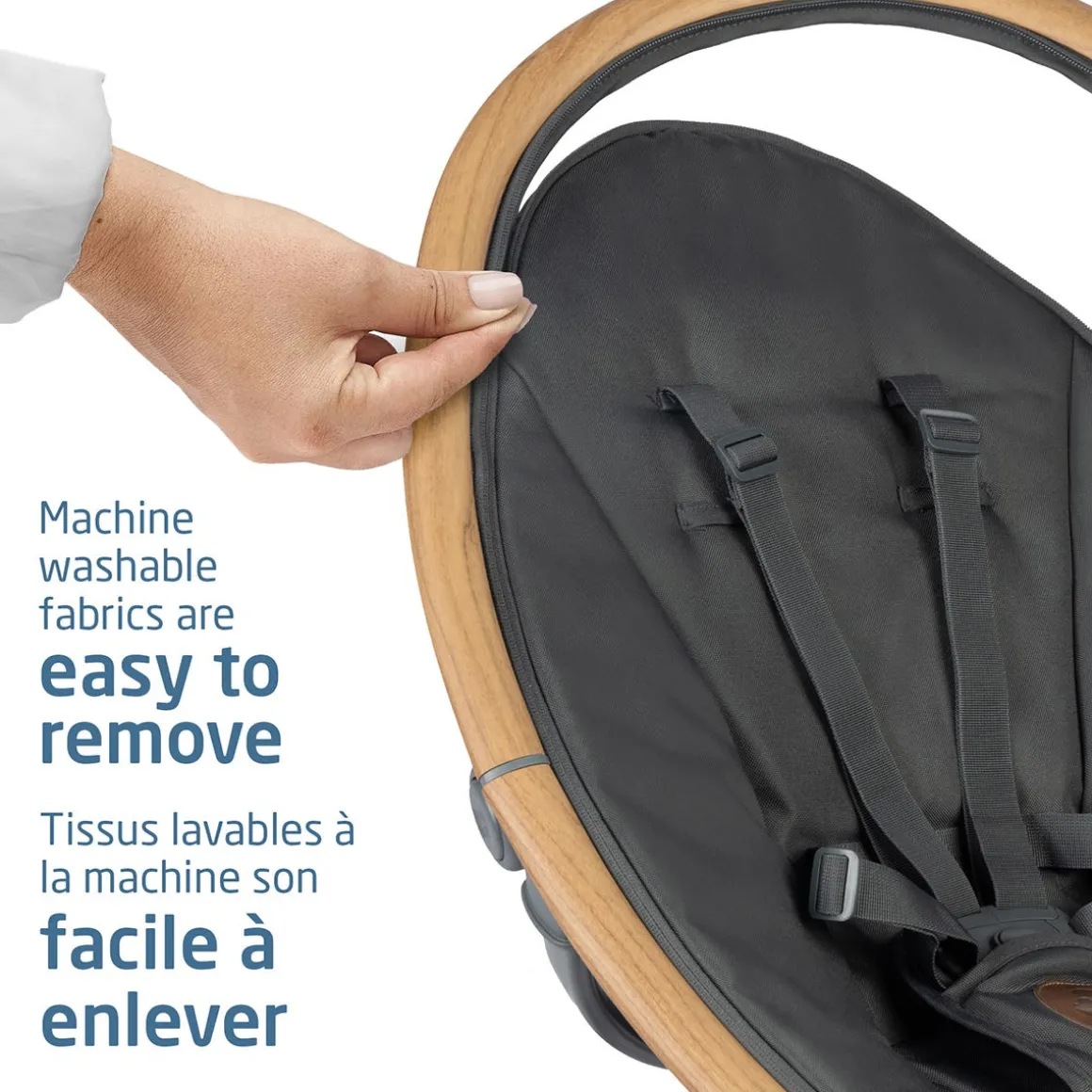 Suits your style Its luxurious finishing and high-quality fabrics ensure the design matches any interior, and it comes with an easy to remove and machine-washable cover. Finally, Cassia comes with two toys to give your baby something to look at, two recline positions and a soft and cozy newborn inlay to provide you and your baby with the utmost comfort.