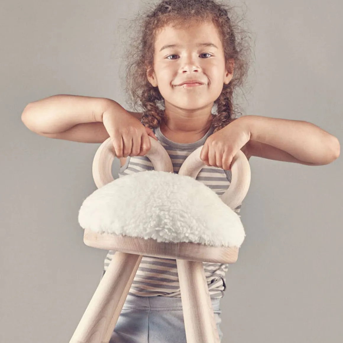 Sheep Chair is designed by the Japanese designer Takeshi Sawada. It is a playful piece of children’s furniture, with a sculptural design, and a welcoming appearance. It is made in fine European beech wood, with feet in oak and a white fluffy seat made with faux sheep skin.