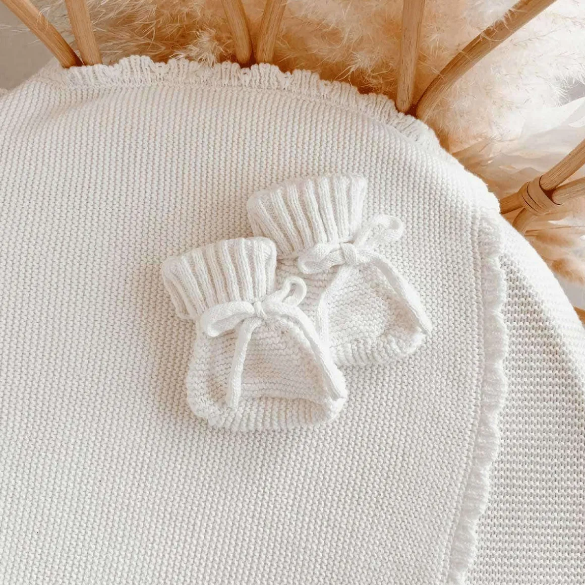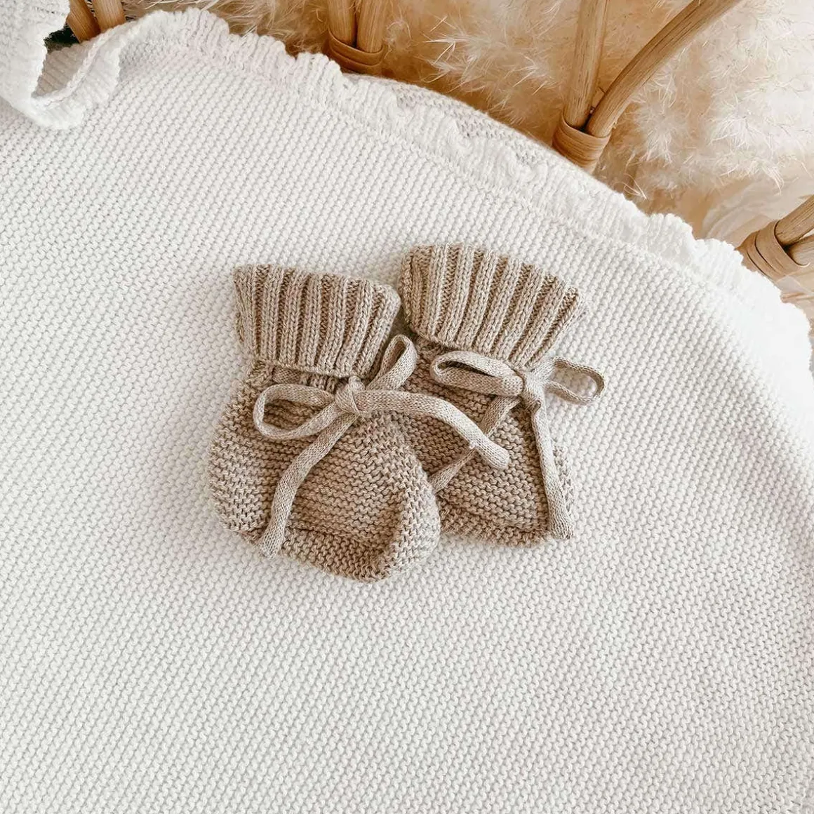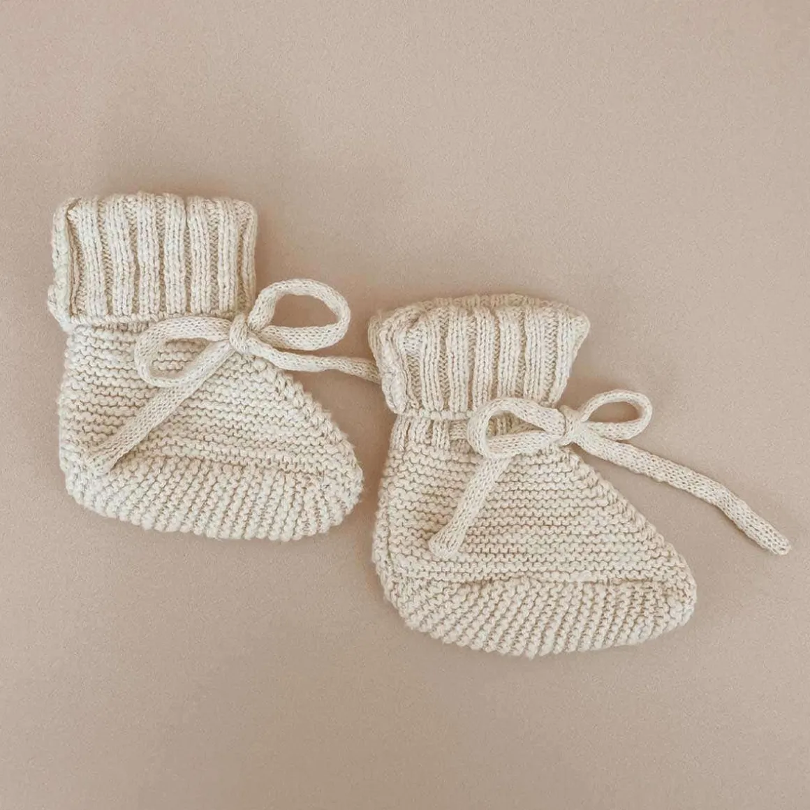 The timeless and gender neutral chunky knit booties are the perfect wardrobe addition for your little love. Available in classic colours and suitable for newborn to approx 6 months.