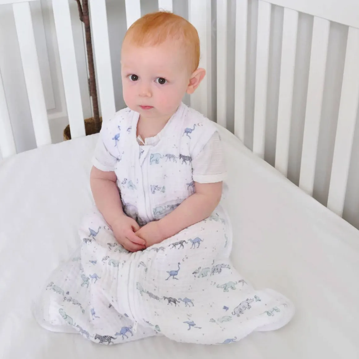 There’s no need to stress over loose blankets in the crib with this breathable classic sleeping bag. Impossible for little legs to kick off, the wearable blanket slips over your babys pjs and zips open from the bottom, making stealth nighttime changes aden + anais sleeping bags are designed to be worn over baby pyjamas, ensuring a safer nights sleep by eliminating all loose blankets in the crib.