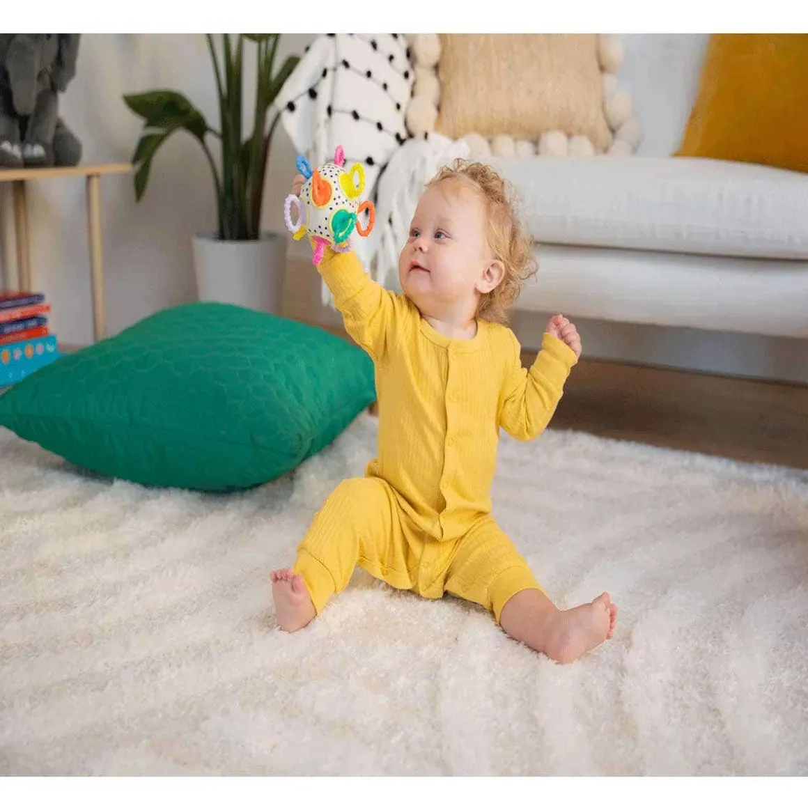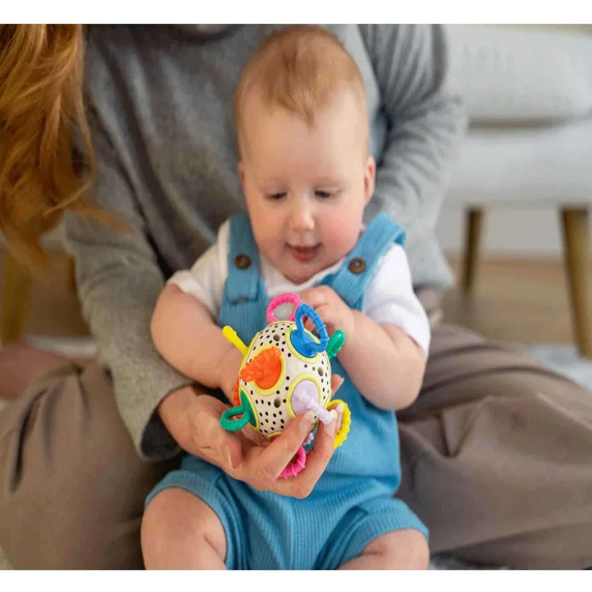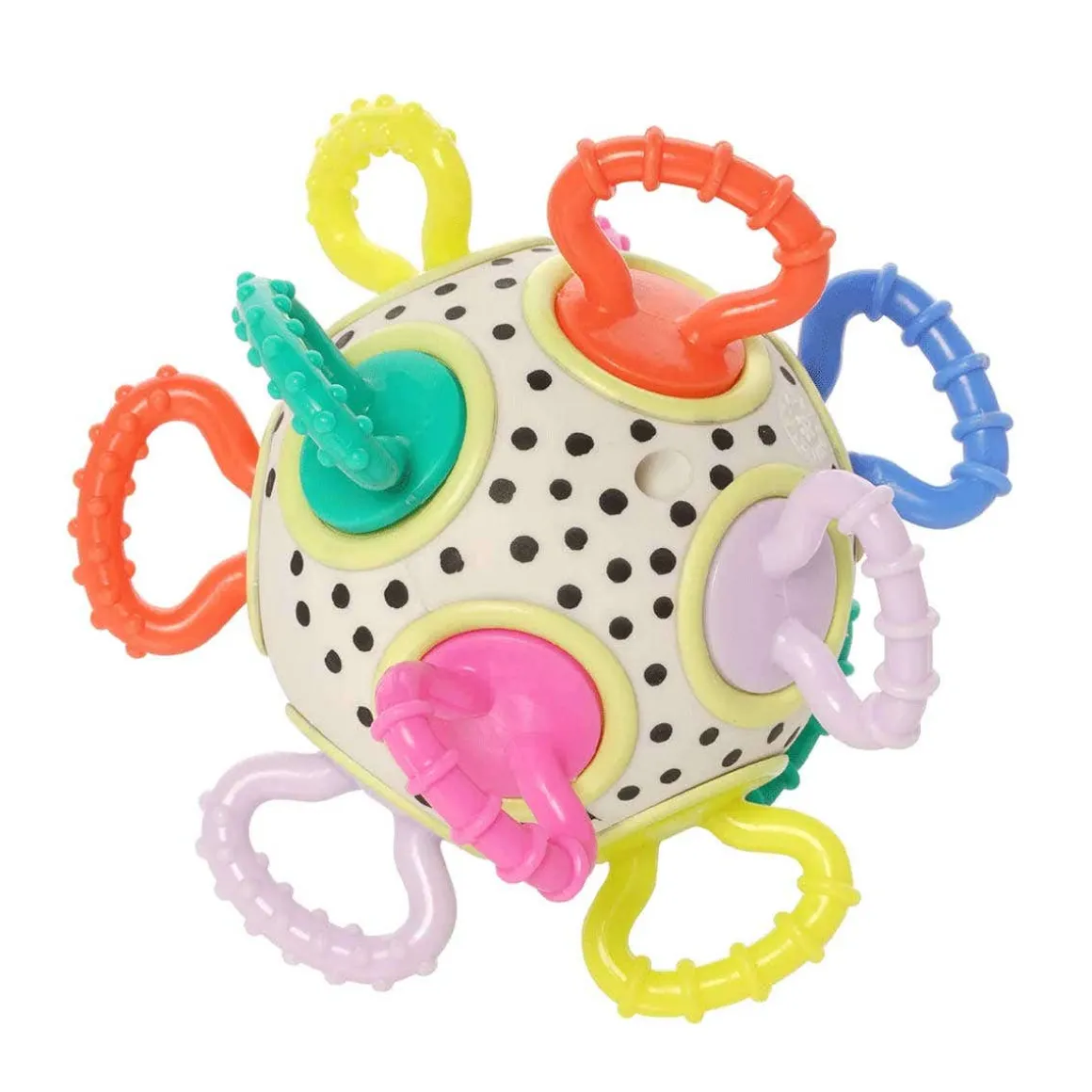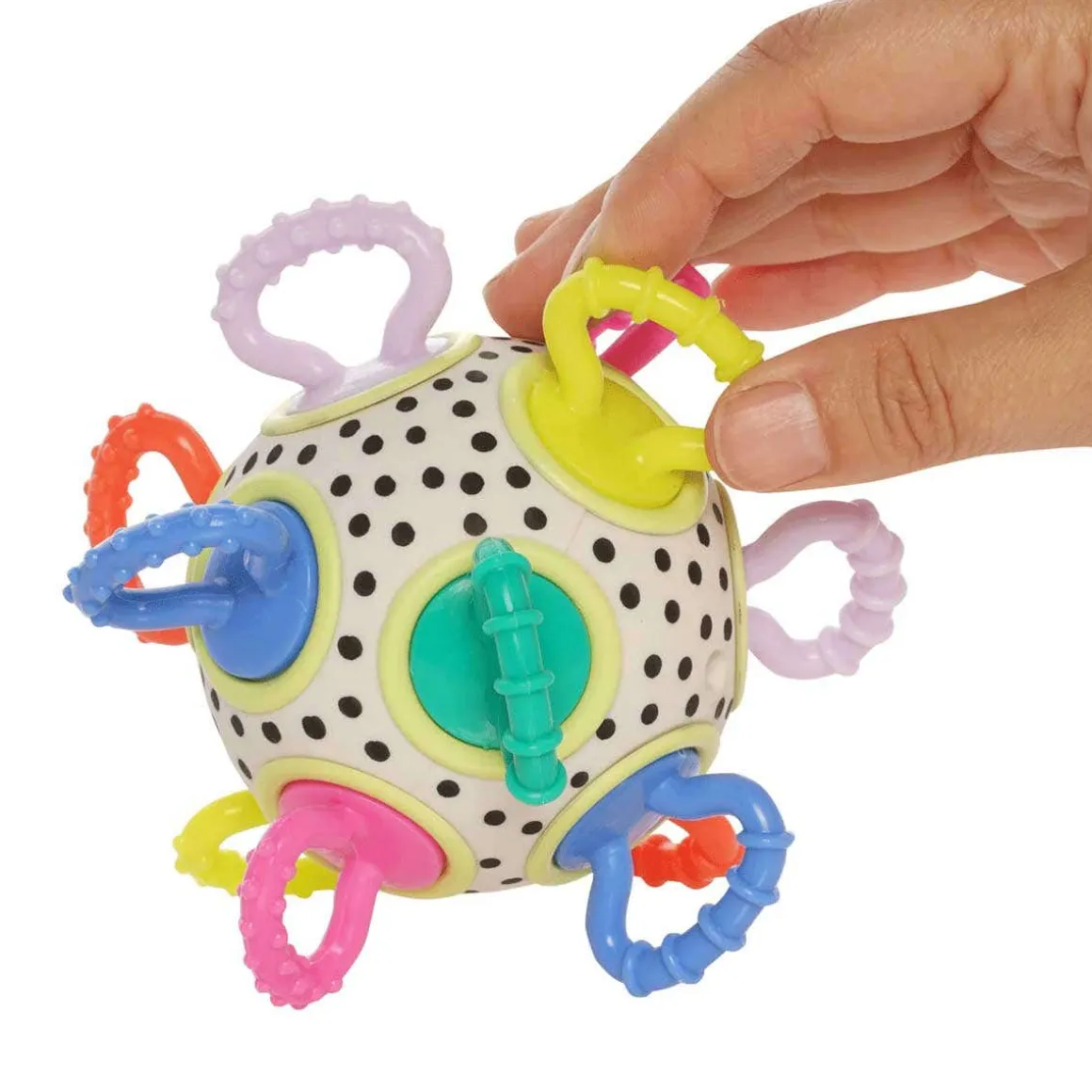 - Encourages fine motor development through grasping