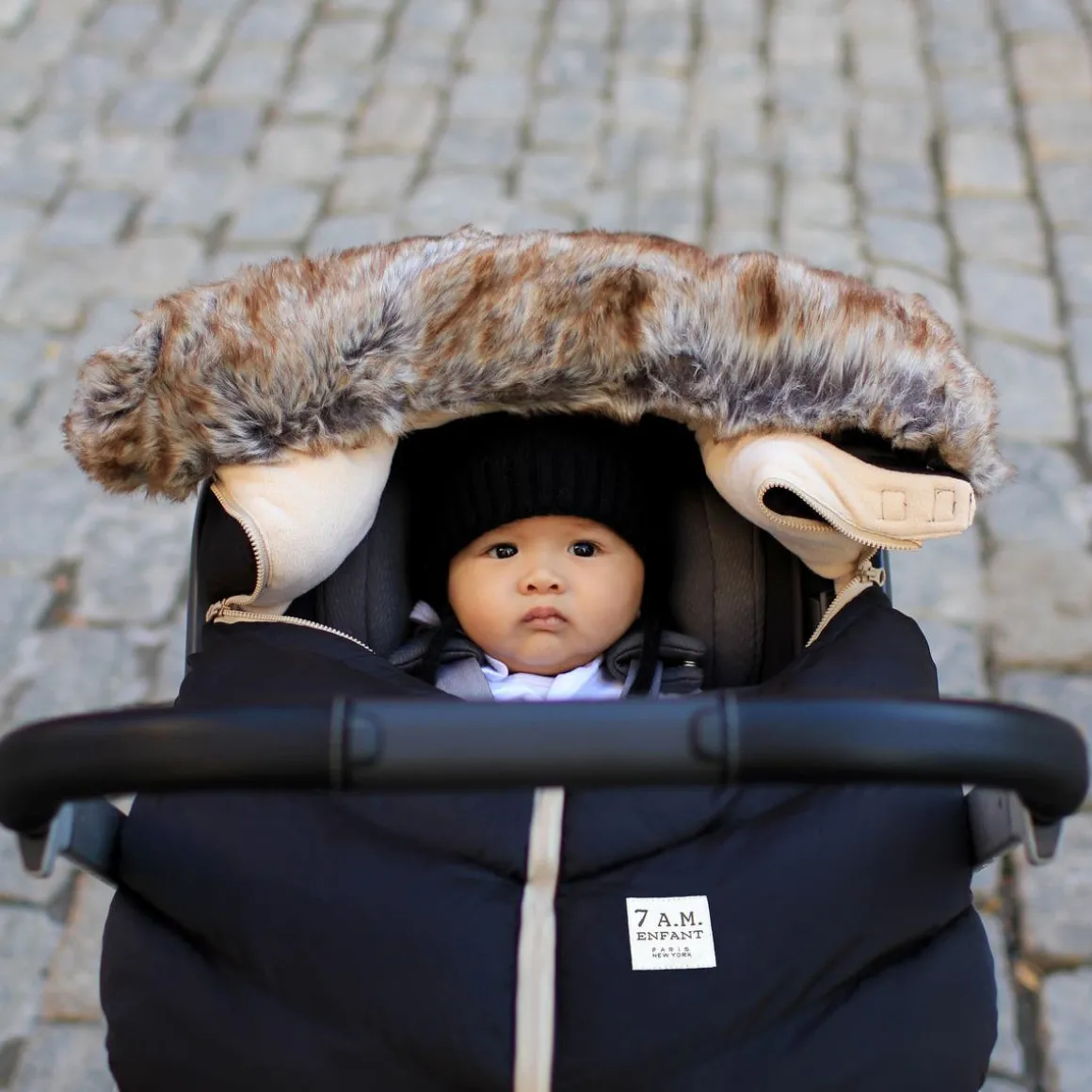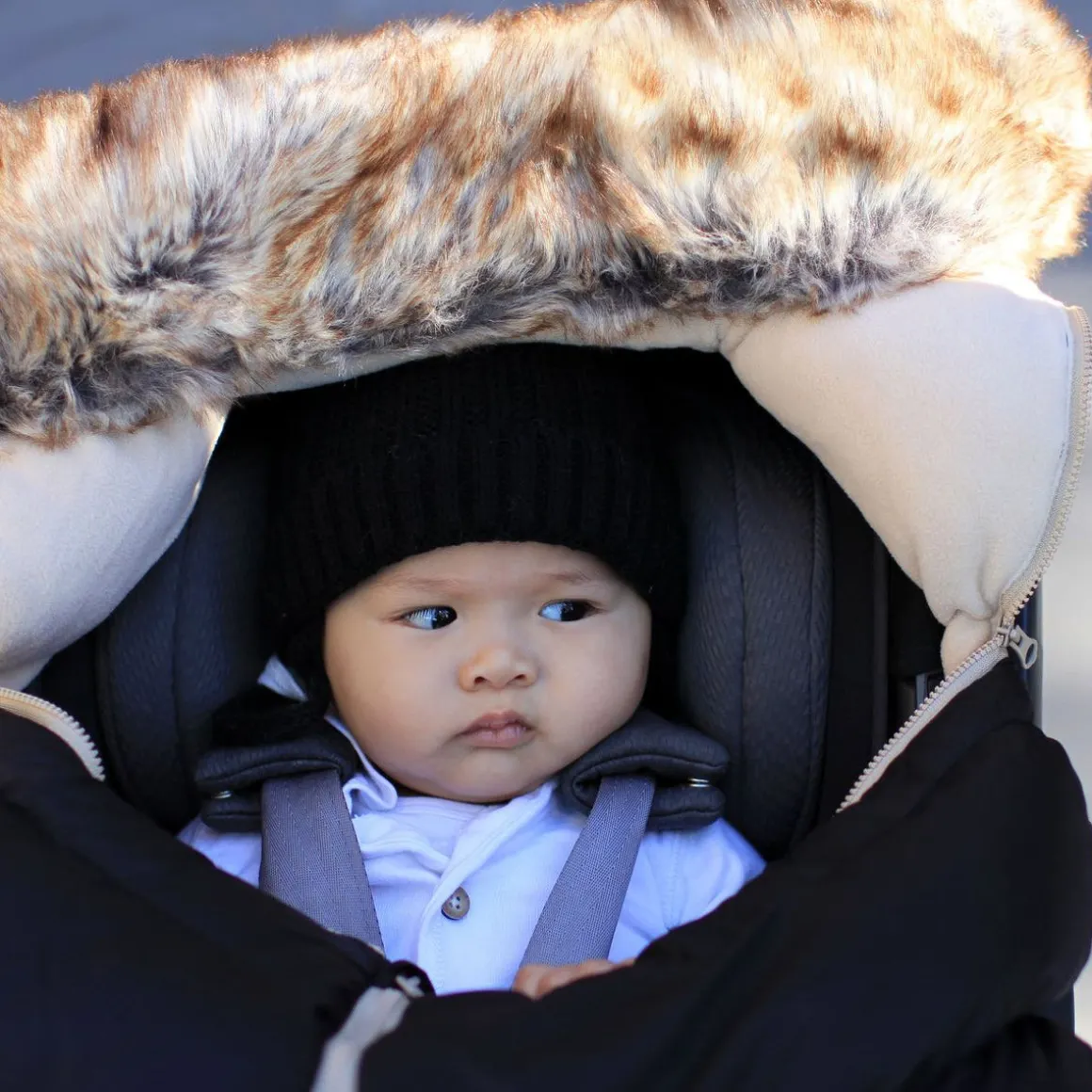 Think of the Car Seat Cocoon as a puffy cover for your baby’s car seat! It fits all models seamlessly, slipping on and off in seconds and fitting snugly thanks to a simply designed elastic base. And though it’s resistant to both wind and rain, it’s ultra-lightweight and comfortable for your little one. It’s a timesaver, too. You won’t have to struggle with multiple layers of garments, just make sure your baby is well dressed in the car seat and the Car Seat Cocoon will shield from the harshest conditions, keeping baby cozy on winter walks.