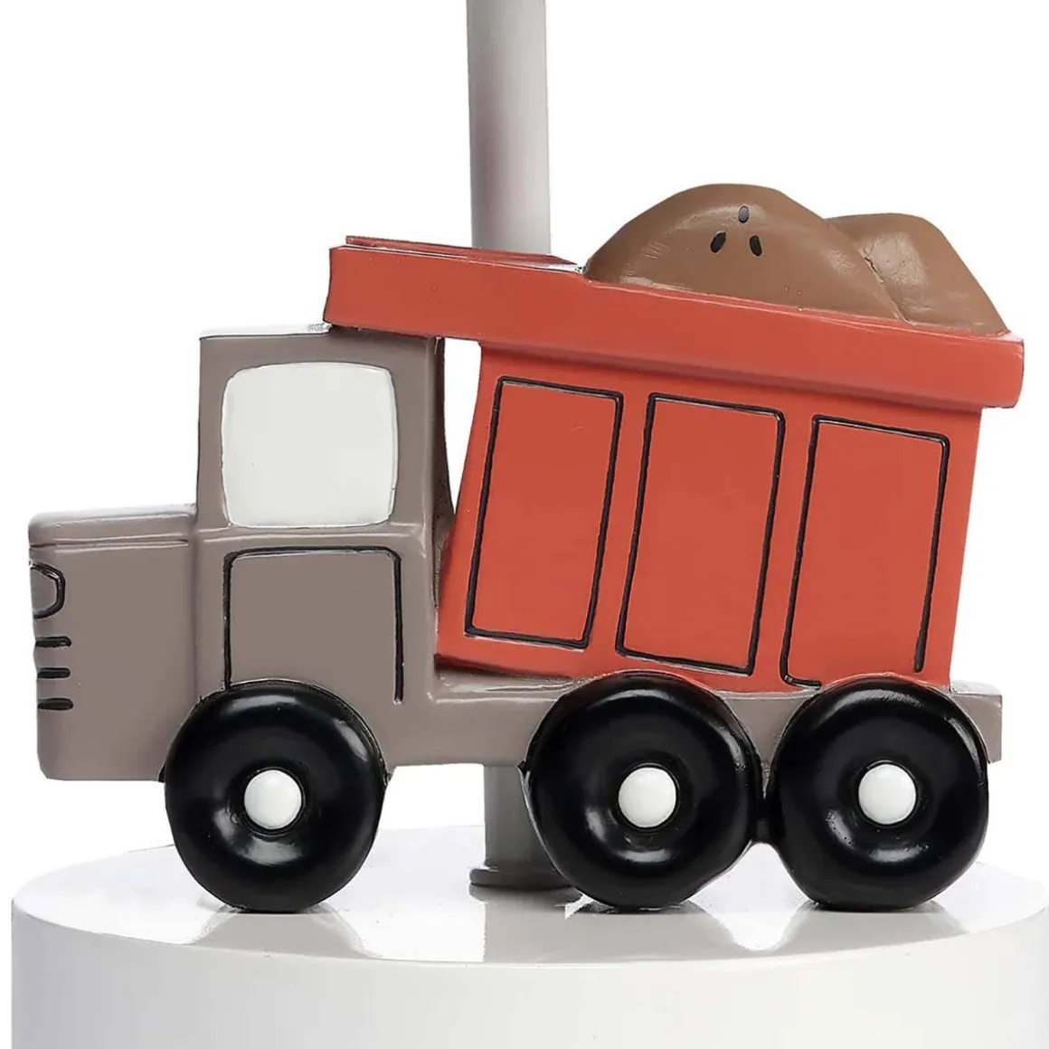 - Coordinating lamp shade features three types of trucks