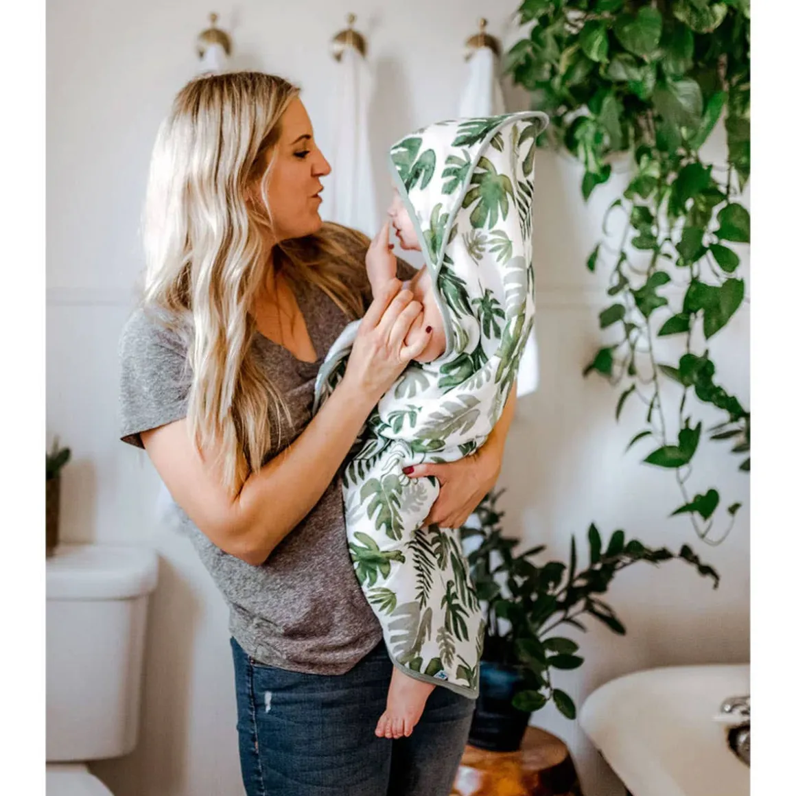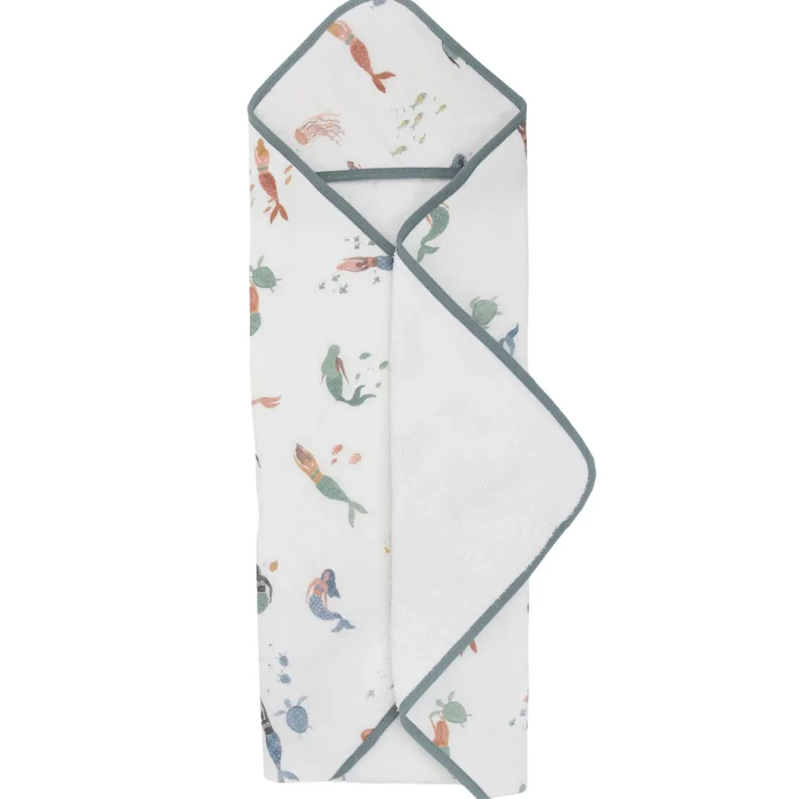 Splash into bath time with a plush and absorbent hooded towel. Featuring a cozy hood the hooded towel is crafted with printed muslin on the outside and ultra-soft terry cloth on the inside.
