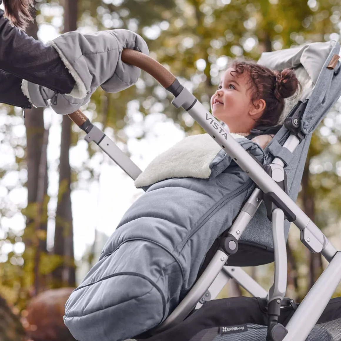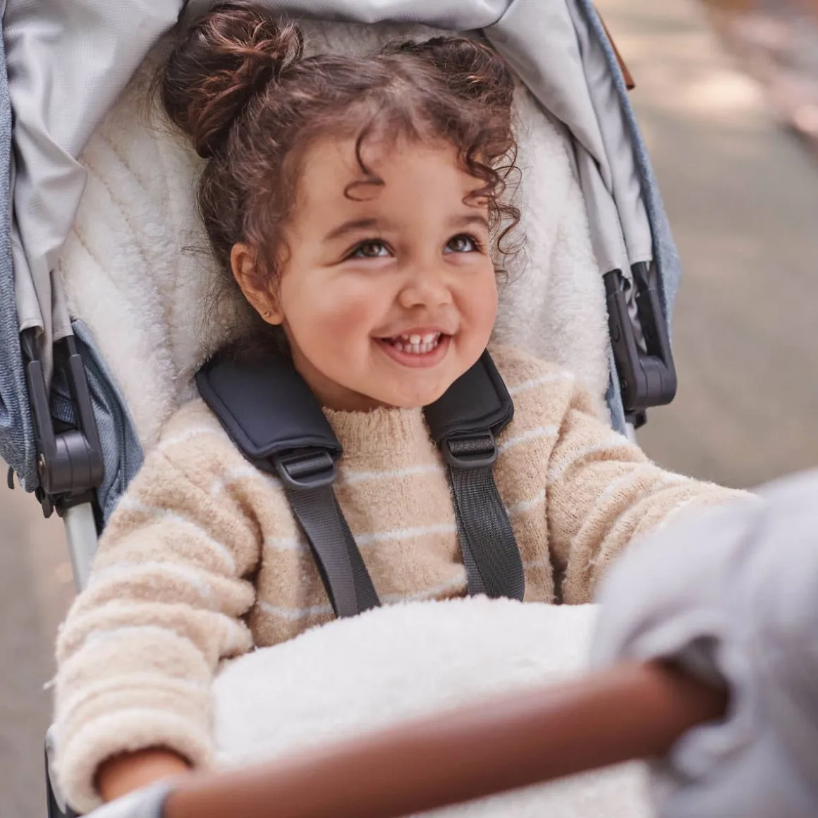 The ultra-plush CozyGanoosh footmuff provides ultimate coverage to keep your child toasty warm in inclement weather.