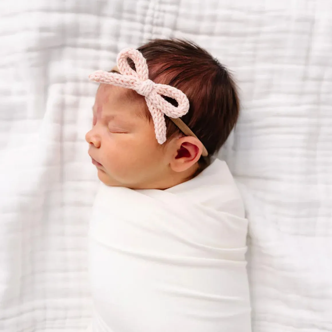 Dress your little one up with crochet bows! Handmade by local moms from high-quality satin. This is the perfect bow for your darling little girl! Each bow is hand tied and is attached to a nylon headband. All bows are secured so they do not come undone!