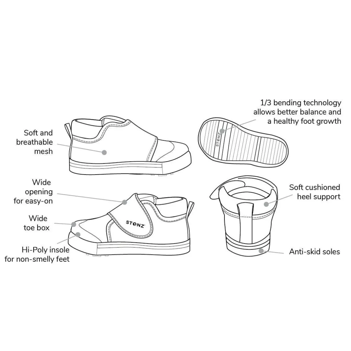 Comfortable for them and easy for you, the wide opening of the Cruiser ensures you can slip them on and be out the door without the hassle; perfect for those hectic mornings. With a little practice, they’ll be walking, running and jumping in no time!