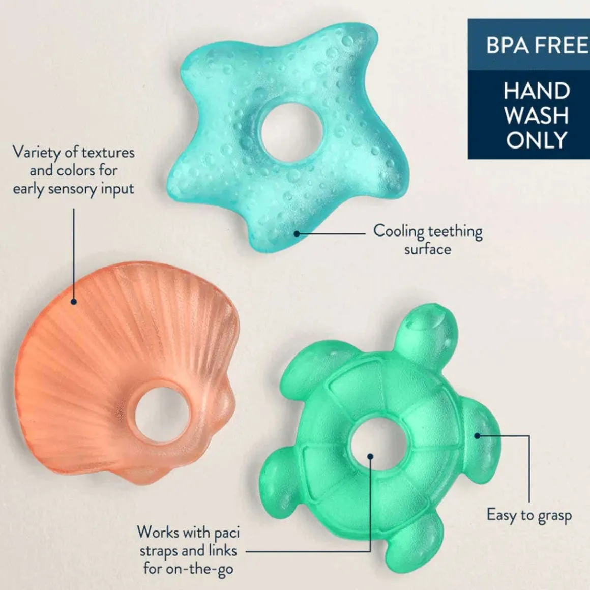 - 3-pack of water-filled teethers