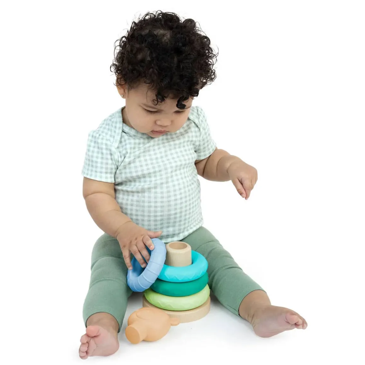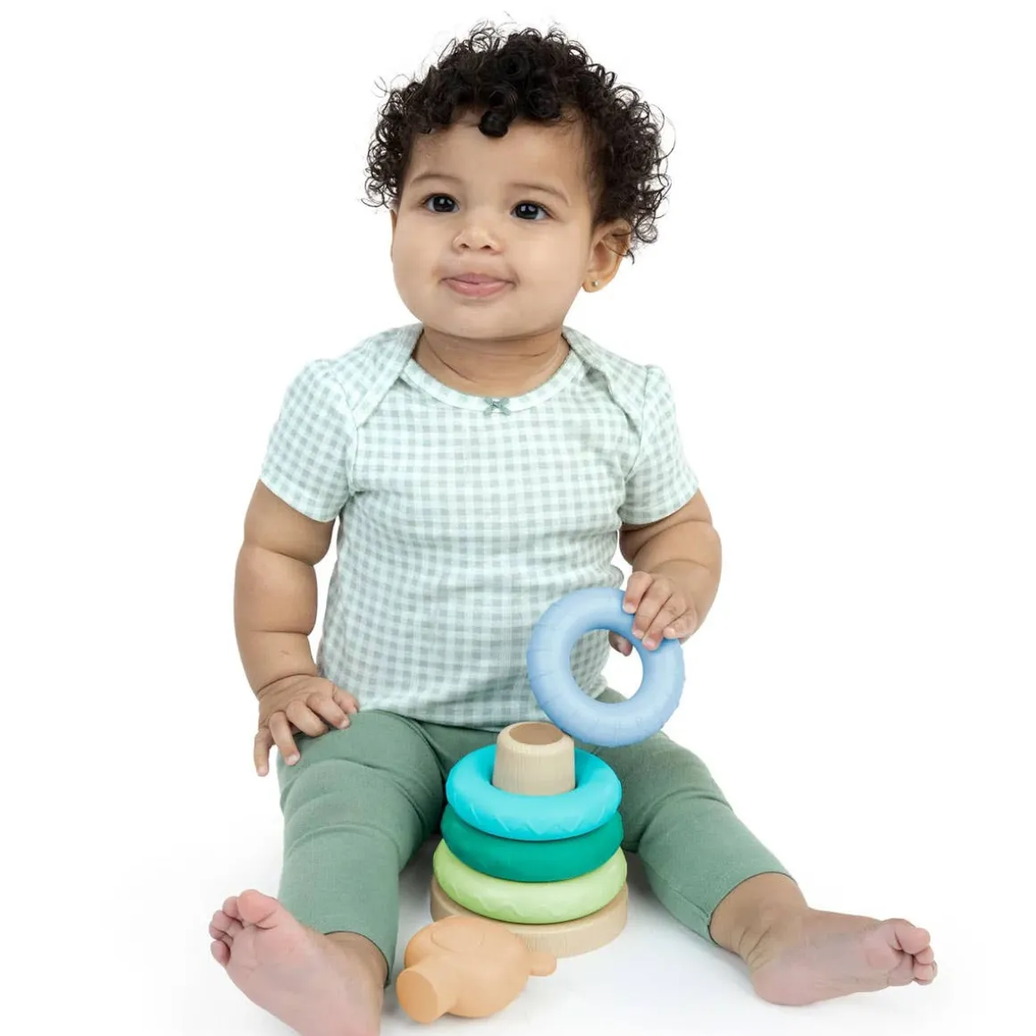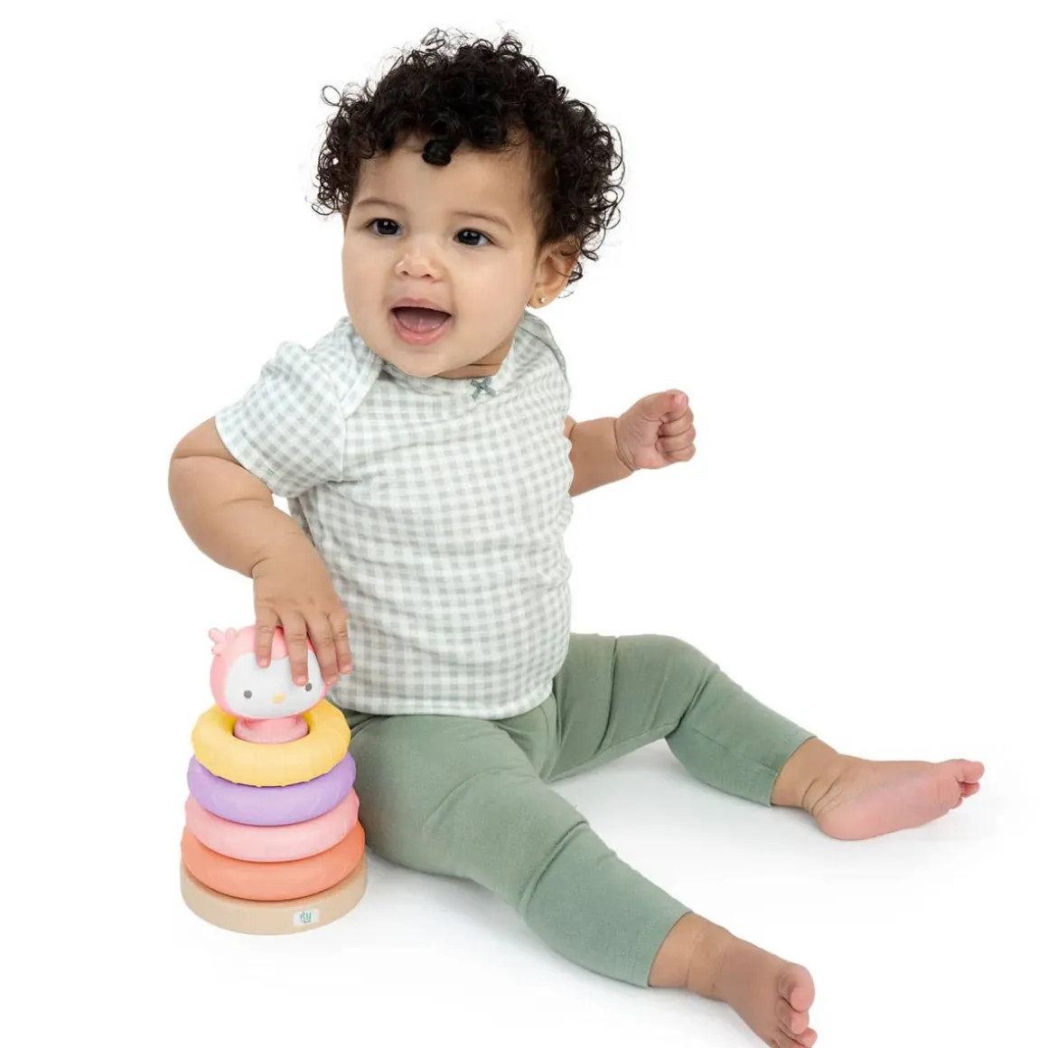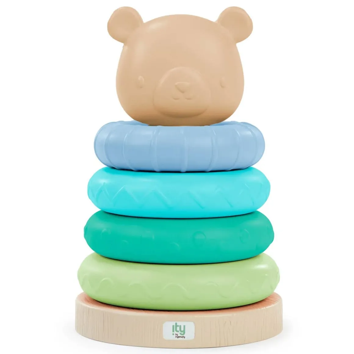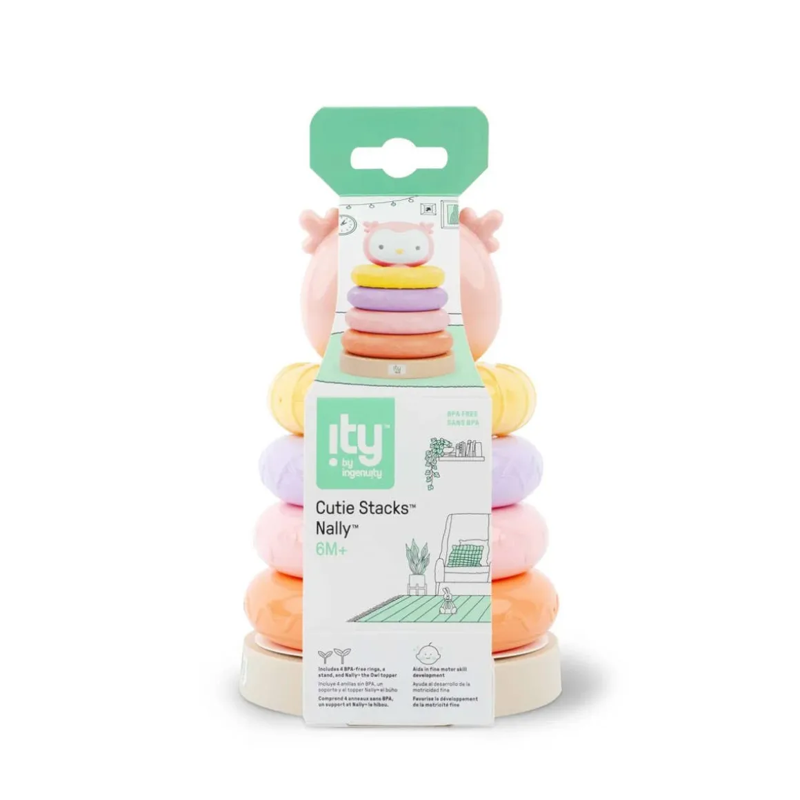 Unpack a wonderful way for infants and toddlers to discover textures and colors with the ity by Ingenuity Cutie Stacks -Nally and Nate! Adorable “a-ha” moments are only a stack away. Topped with super-cute Nally the owl and Nate the bear, Cutie Stacks comes with a faux wood stand and 4 colorful, lightweight, BPA-free multi-textured rings that are easy for baby to hold and stack?. Cutie Stacks are an engaging way to aid infants in developing sensory skills, such as color learning, and helps stimulate gross motor development through stacking. This infant stacking toy coordinates with other woodland-inspired characters in the ity by Ingenuity collection such as the soft Cozy Lovey – Nate and Cutie Stacks starring Nally the owl. Be sure to wipe stacking toy clean before use. Cutie Stacks – Nate is recommended for age 6 months and up. This fun stacking toy makes for a fantastic baby registry essential item encouraging hands-on, screen-free play, and developmental skill-building!