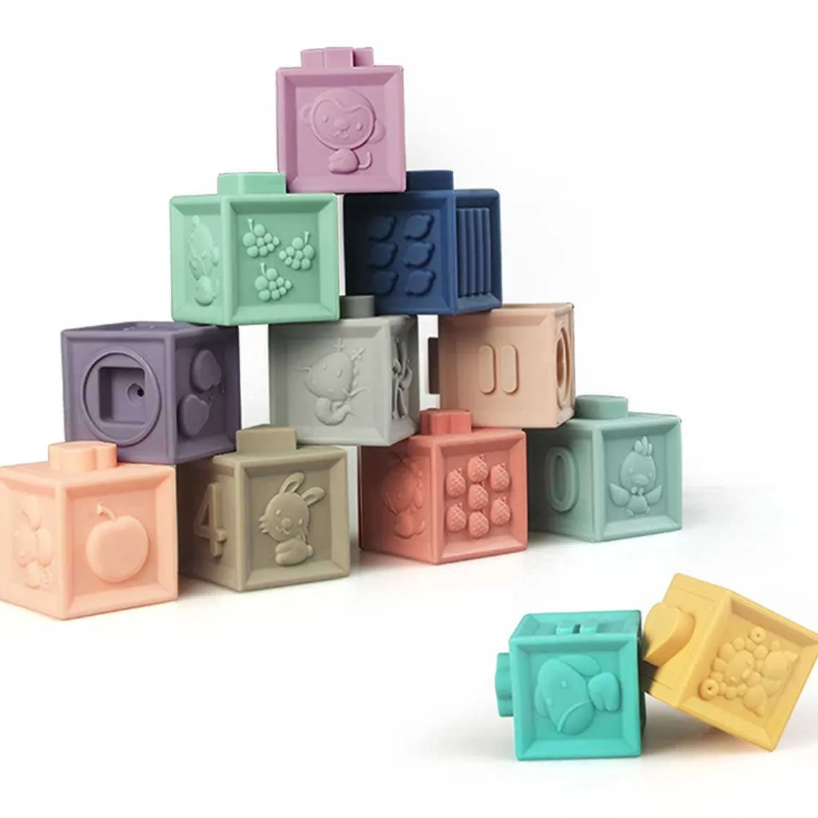 - Versatile – babies can learn to recognize animals, fruits and shapes while toddlers will learn to recognize numbers. The cubes are stackable: they can be assembled by matching shapes and pile up. They will develop baby’s fine motricity and coordination.