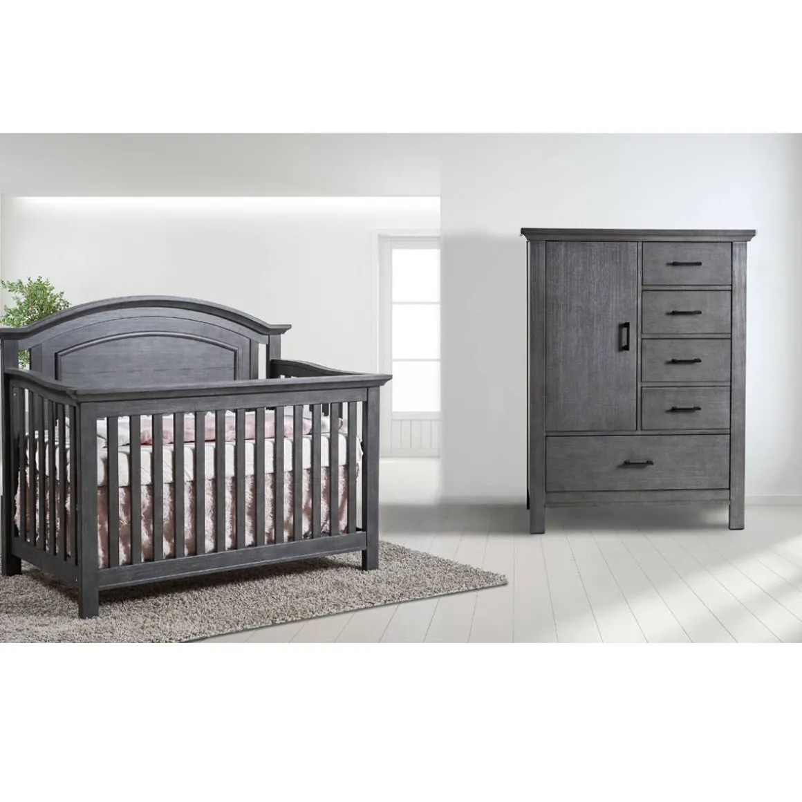 The Como Door Chest allows for the ultimate flexibility in storage design and style by offering both drawers and shelves. The large door sits next to four small drawers and one large drawer runs along the bottom of the entire piece. All drawers are self-closing. It’s crafted from select sustainable hardwood. Tested to meet or exceed all required US and Canada standards.