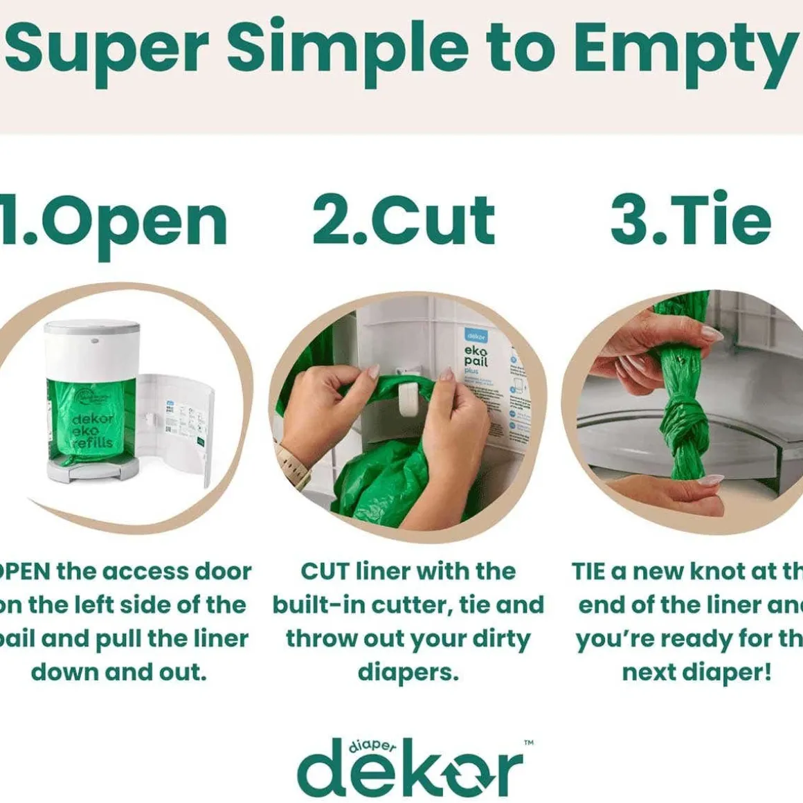 - MOST COST-EFFECTIVE DIAPER PAIL REFILL SYSTEM: While trash bags may seem cheaper, with Dekor Eko Refills, you don’t have to wait until your diaper pail is full—you can empty your diaper pail more frequently without wasting a whole trash bag.