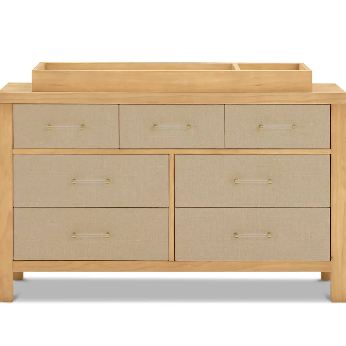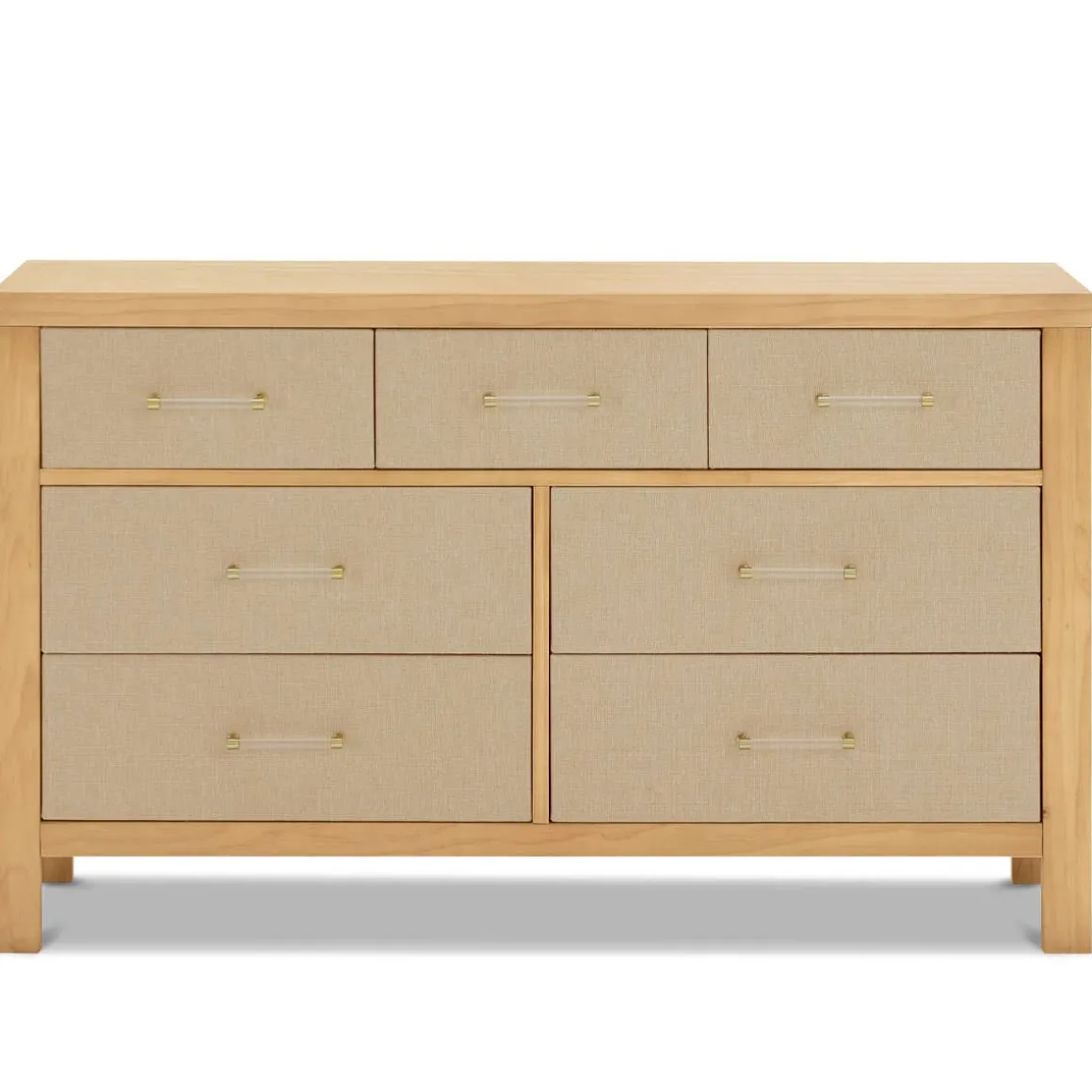 With its timeless silhouette and heirloom-quality fabric, Eloise 7 Drawer Dresser has a place in any nursery – traditional, modern, or eclectic. The fabric detailing adds depth, character, and a touch of nature-inspired charm to each piece. Swoon-worthy acrylic and gold handles add just the right amount of drama (the good kind) to your home. The dresser provides ample storage space for clothing, blankets, and more. Its versatility ensures that it will seamlessly transition from a nursery staple to a sophisticated piece in any room of your home.