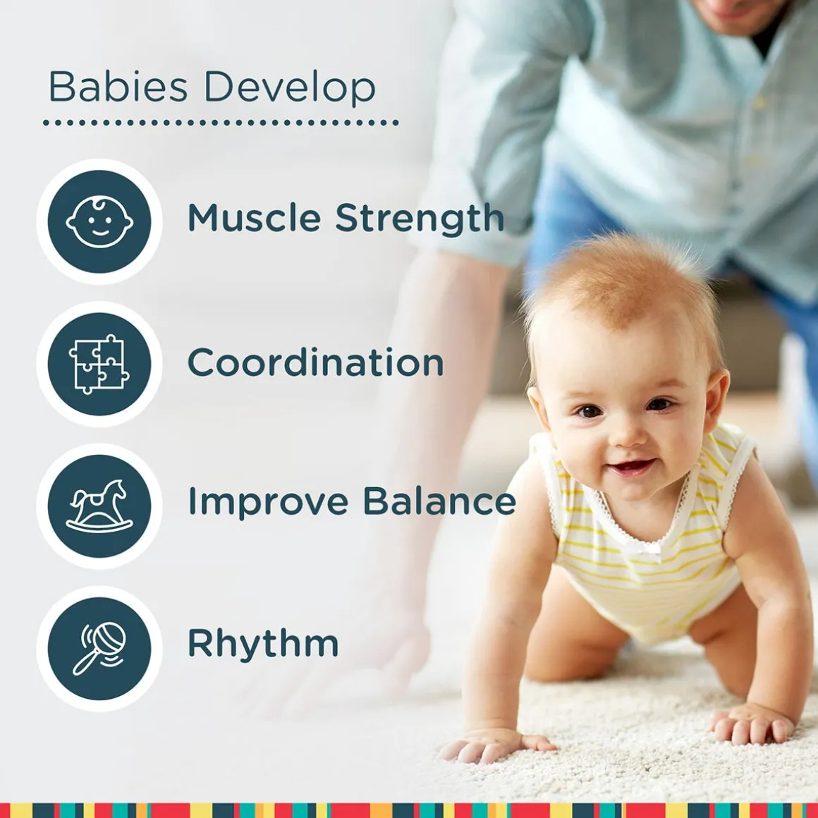 The Jolly Jumper Exerciser is sturdy & scientifically designed, allowing baby to enjoy healthy exercise from as early as *3 months (*if baby can hold head up with full neck support) to walking age with a maximum weight of 13 kg or 28 lbs. Your baby will build strength, balance & coordination safely & comfortably with Jolly Jumper