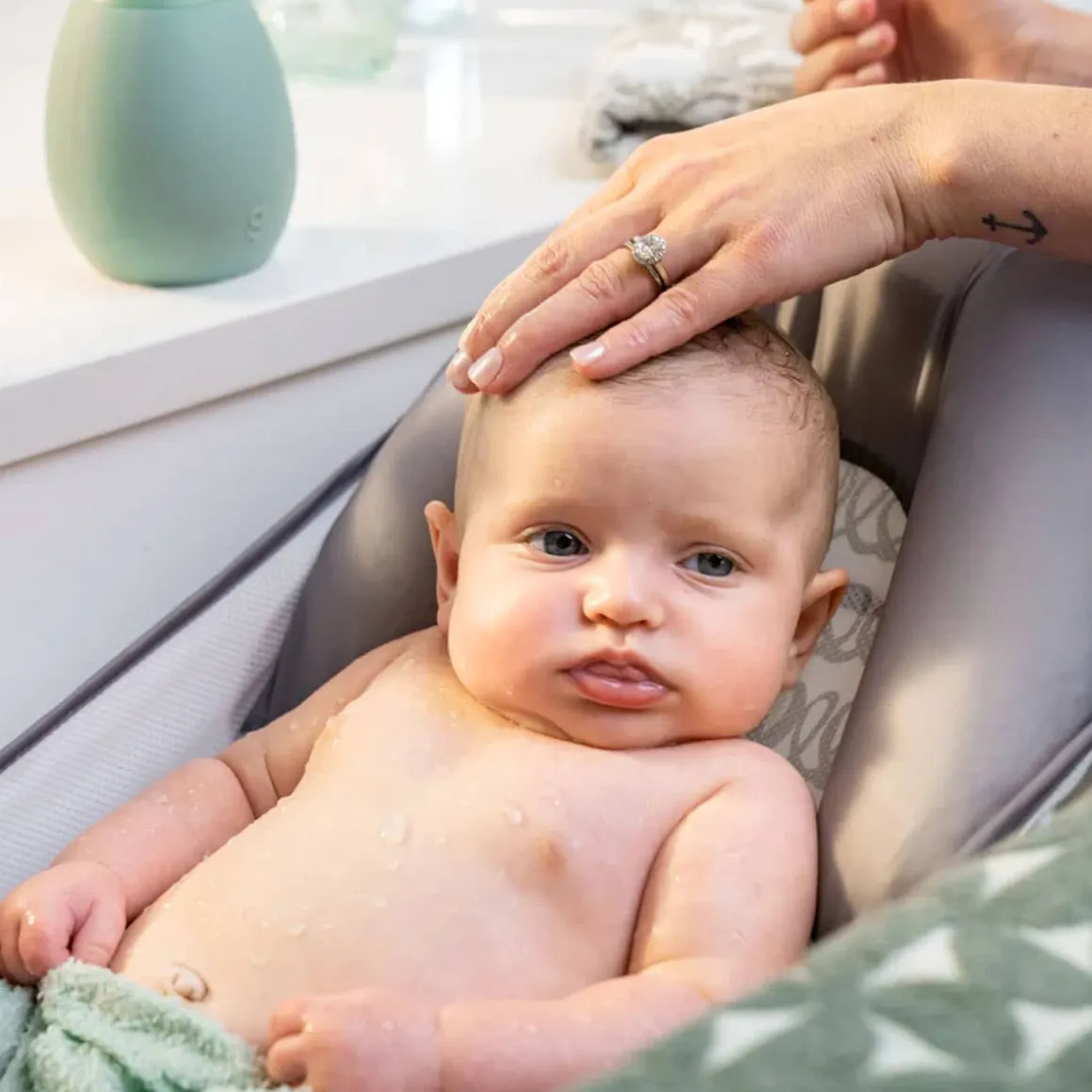 Support your little one for their first soap down and beyond with the Summer by Ingenuity FoldAway 2-Position Bather! This bather provides the security your baby needs for extra comfort while bathing. A comfy mesh sling cradles your baby, while the soft bolster headrest provides added support when they need it most. With 2 recline positions, this bather grows with your baby through their early days of bathing. The 4 non-slip grippers on the bottom of the bather help keep it in place during bath time. Busy parents need easy clean-up, and the machine-washable fabric sling makes it a breeze. After washing, simply place the sling back on the frame to air dry, and you’re ready to go for baby’s next bath! The compact fold design makes it the perfect bathing solution for both home and travel. This bather is made for babies ages 0-6 months or up to 20 pounds (whichever comes first). The assembled dimensions are 22.25″ x 13.75″ x 13.” The Summer by Ingenuity FoldAway 2-Position Bather is an awesome baby shower gift for new parents and their precious little ones!