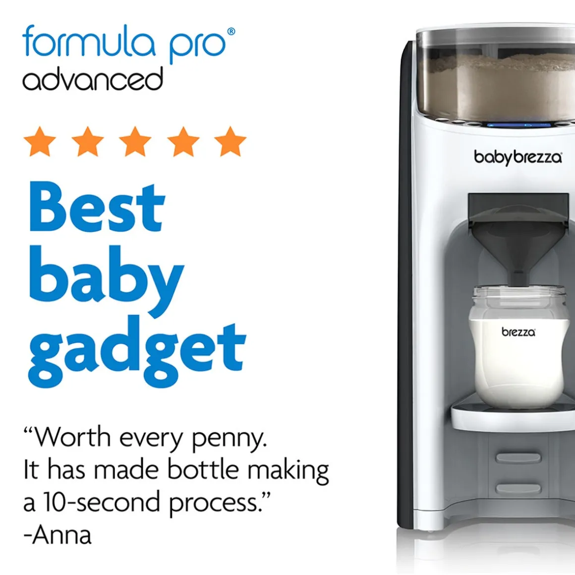 Baby Brezza formula pro advanced is the most advanced way to automatically make a warm, formula bottle instantly. No measuring, no mixing and no fuss. You can customize the perfect bottle for your baby by choosing 1 ounce increments between 2-10 ounces, 1 of 3 temperature settings or dispensing water only. It works with virtually all brands of formula and all bottle brands and sizes. BPA-FREE.