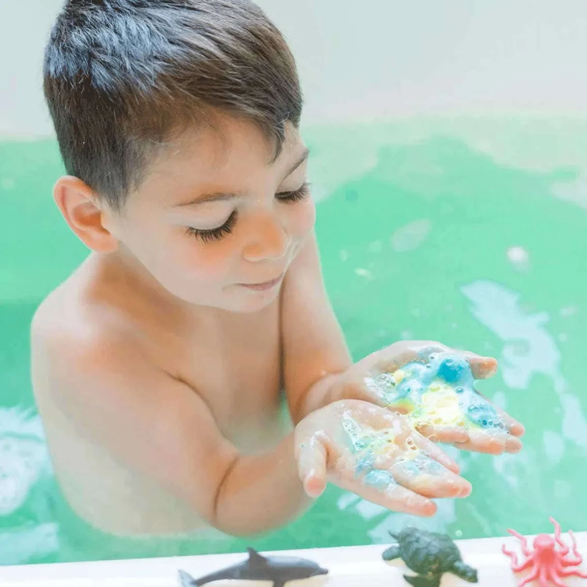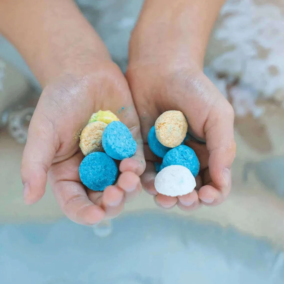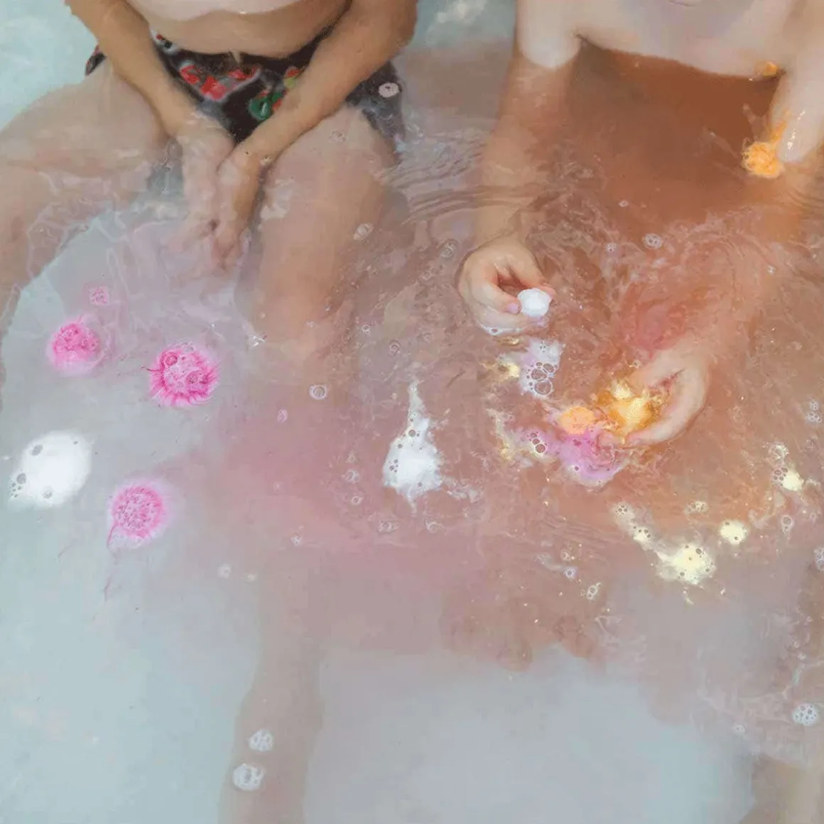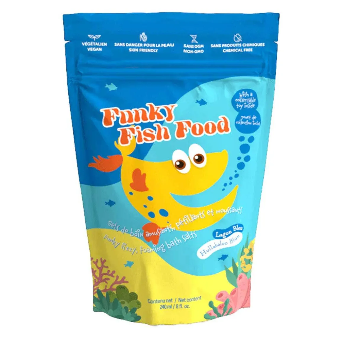 Funky Fish Food is a skin-friendly foaming bath salt that will turn the bathtub into the most colourful ocean in the world! As the droplets rise to the top, delight in the beautiful patterns they create!