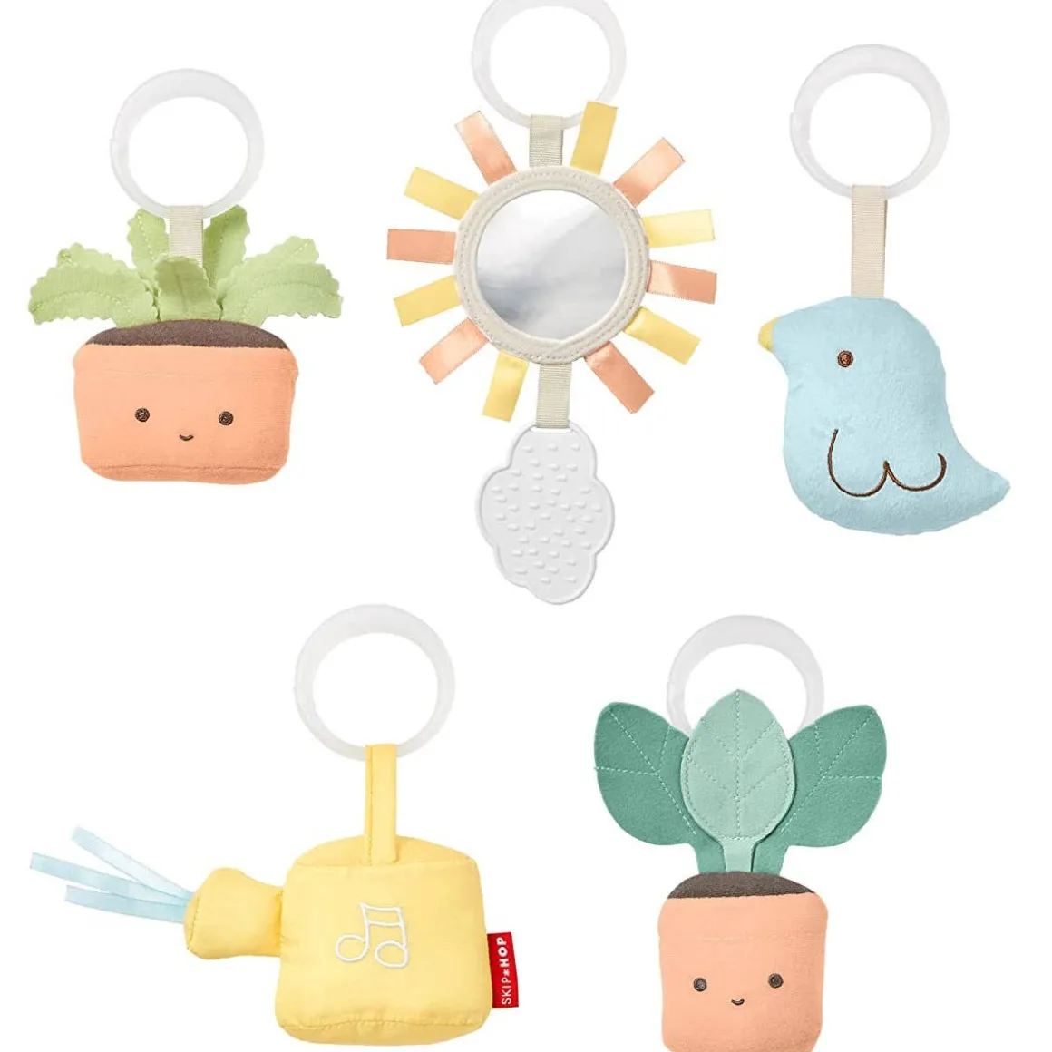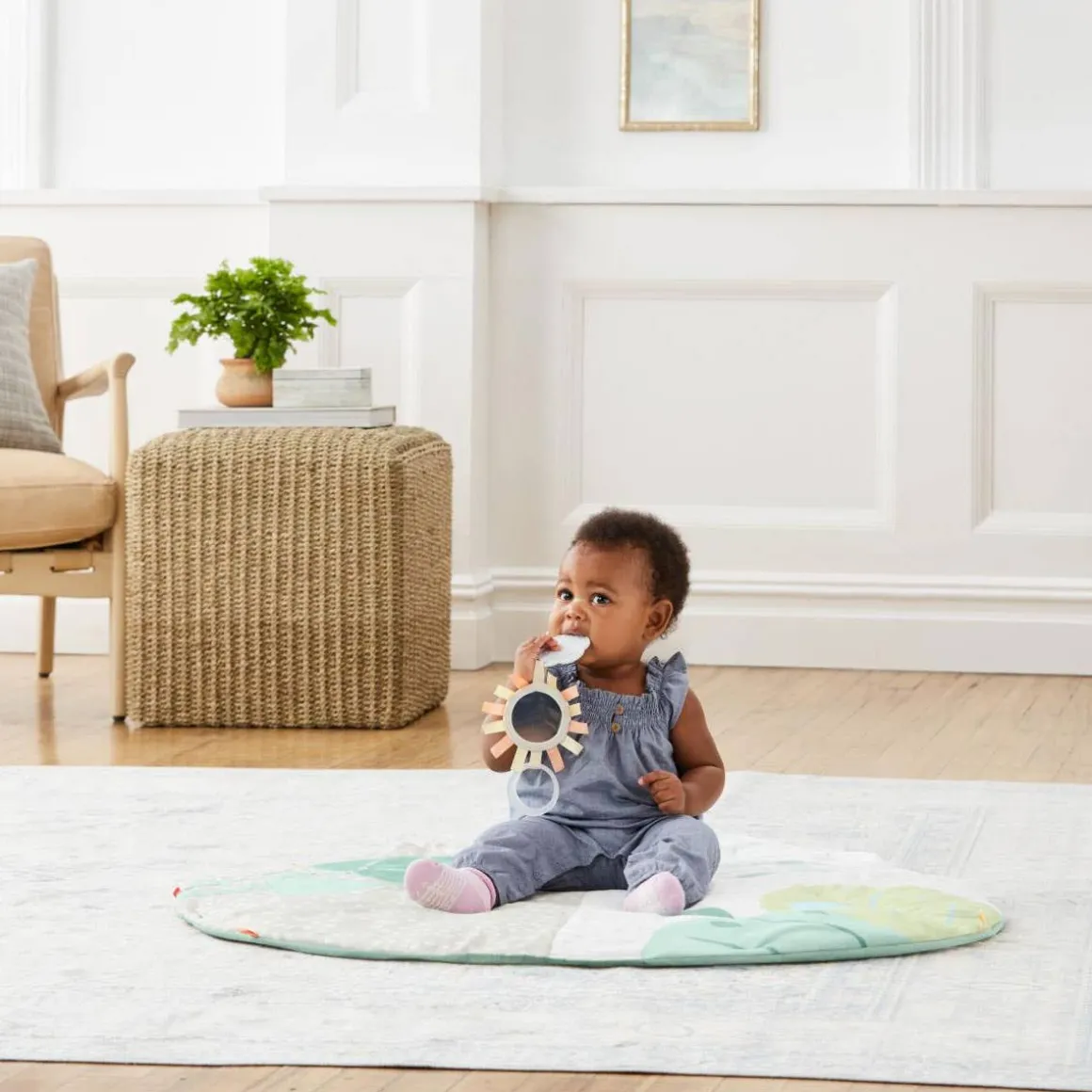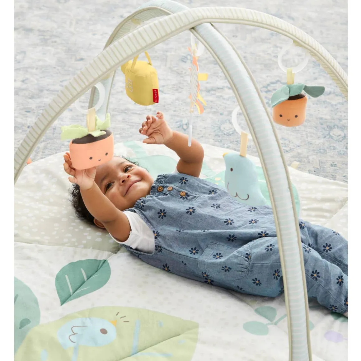 Introduce baby to all things green with skip hop comfy garden-themed activity gym. Featuring a soft quilted mat with multiple textures, we also included a supportive cactus for tummy time play. Packed with 17-plus developmental activities, five adorable nature-inspired toys engage baby’s senses with music, sounds and more to explore.