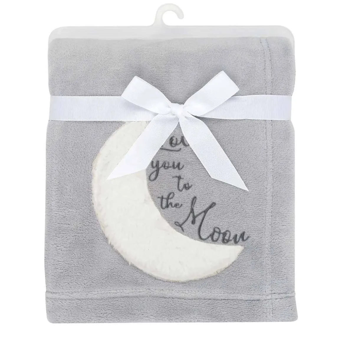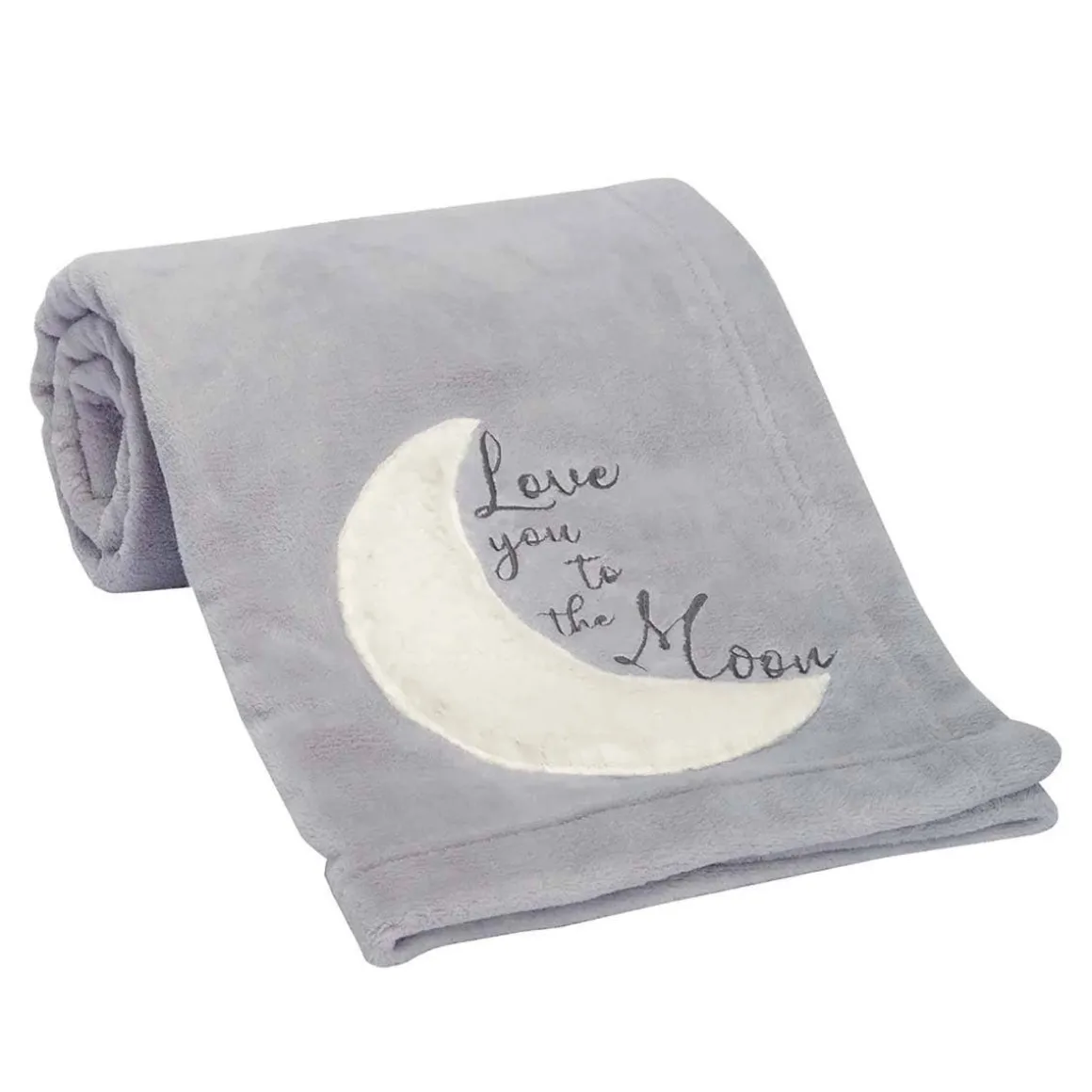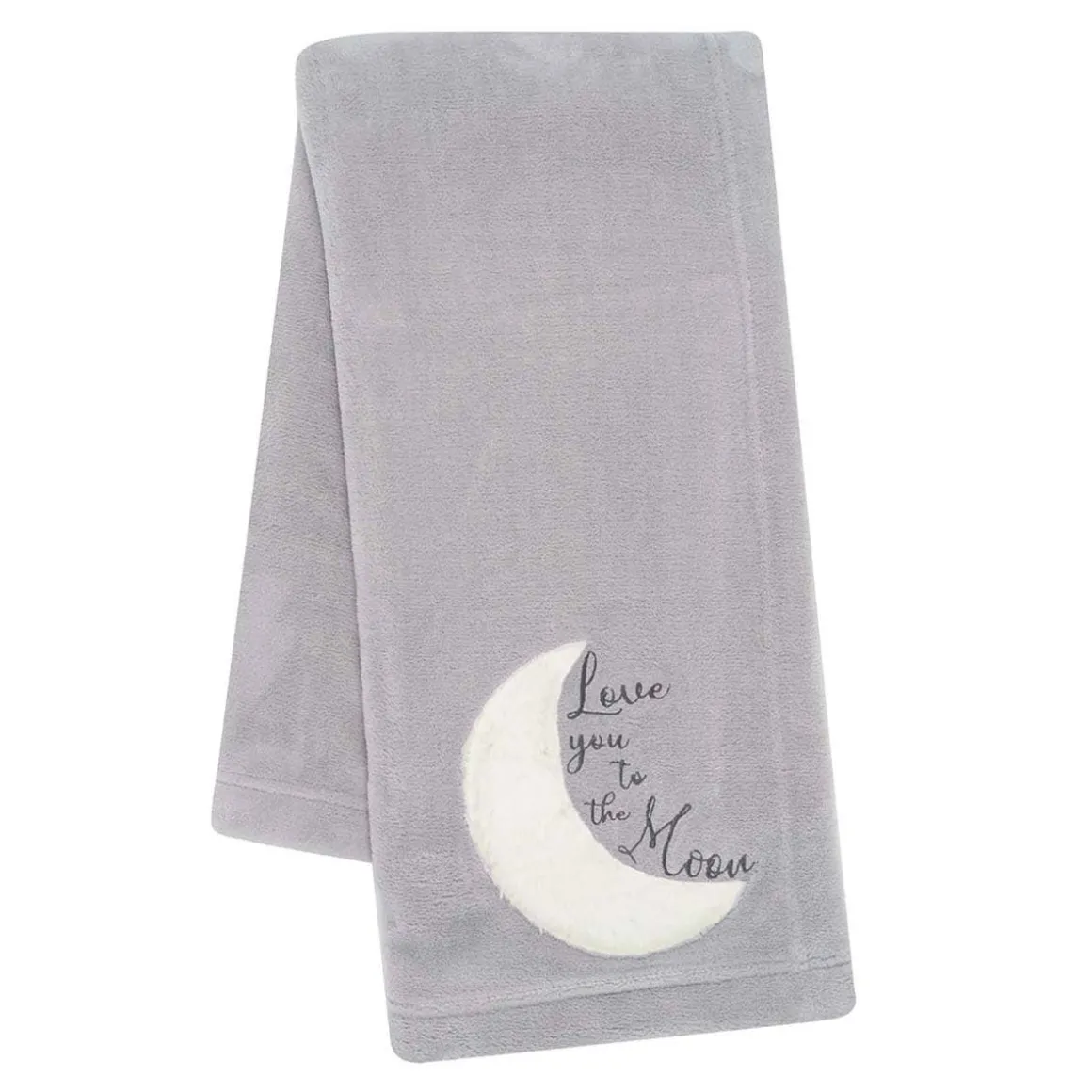 - The words “Love you to the moon” are embroidered in gray