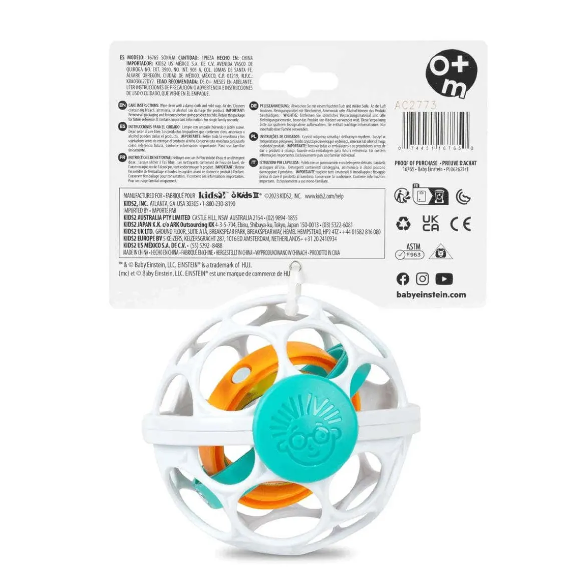 Help baby get an easy grip on new discoveries with the Baby Einstein Grip & Spin Oball Rattle Toy. This BPA-free, easy grasp spinner ball features a self-discovery mirror, engaging rattle beads, and colorful internal loops that spin when shaken to captivate baby at home or on-the-go. Infants and toddlers will love to squeeze and grasp the Oball’s flexible frame or shake and roll the ball to hear rattle sounds. See Roxy the Redbird spin or let baby catch a glimpse of their sweet reflection in the baby-safe mirror! A great gift or first toy for a baby boy or baby girl ages 0 months and up. Perfect for tummy time and seated play, or on-the-go discovery. Wipes clean.