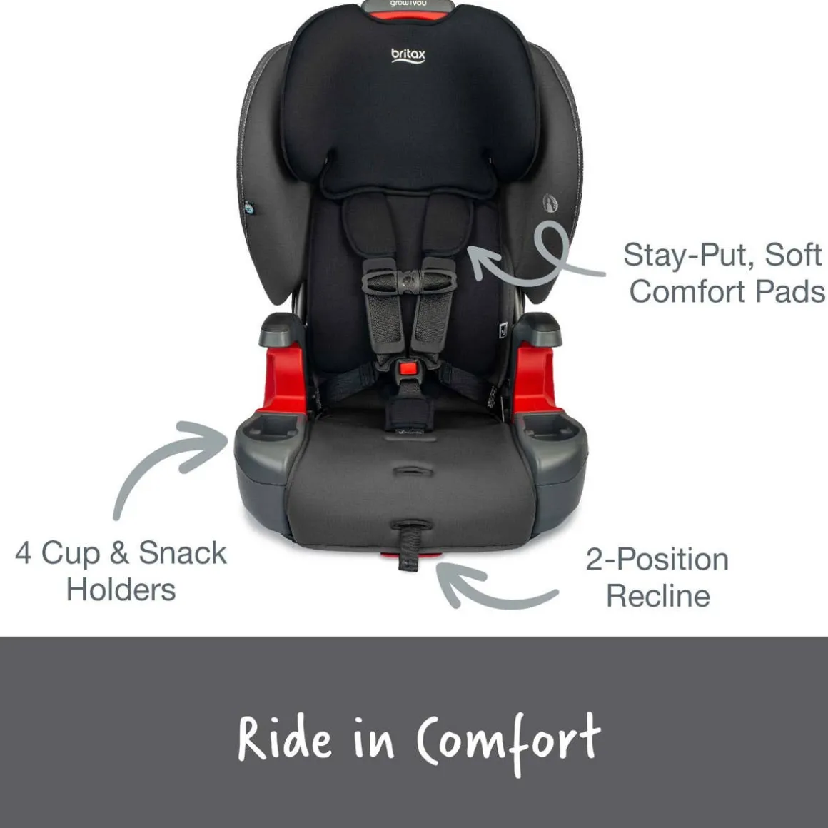 Grow With You harness-2-booster car seat grows with your child from toddler to big kid. It’s made with premium fabrics and padding for superior comfort and style. Installing the seat is simple using the premium, quick-push LUAS connectors. 2 layers of side impact protection surround the head, neck & torso. Plus, SafeCell Technology in the base acts as a crumple zone to help absorb crash energy. With arm rests, cup holders, and harness comfort pads, even big kids enjoy the ride.