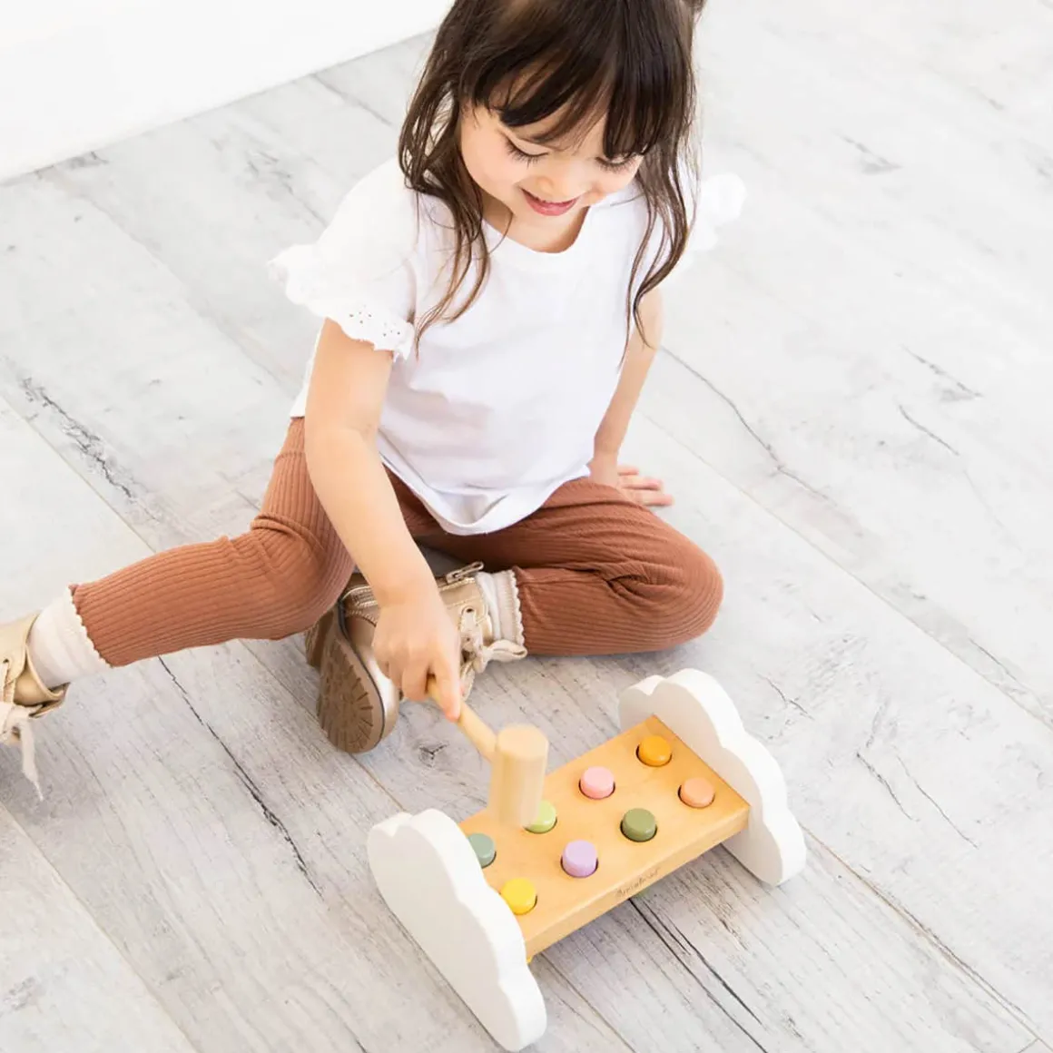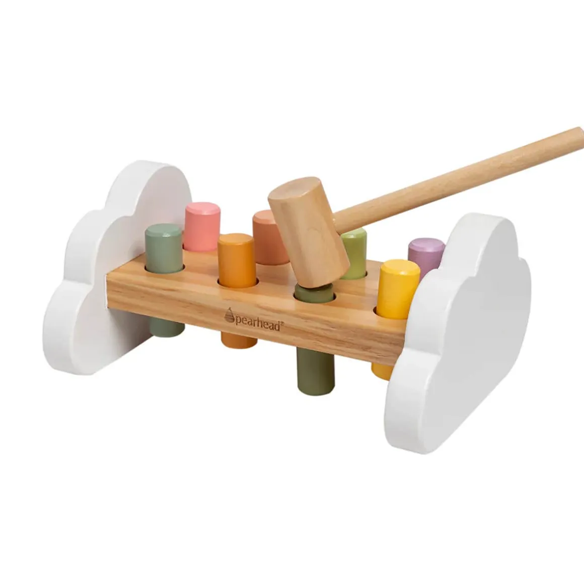 Created to Spark Curiosity: Pearhead’s Wooden Hammer Bench Toy is ingeniously designed to spark curiosity in young minds, encouraging learning and faster development during playtime. With a charming cloud design, it captivates your little one’s imagination from the very first tap.
