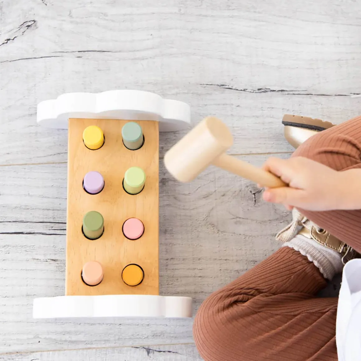 Engaging Hammer Action: Equipped with a wooden mallet designed for little hands to grasp, the hammer bench encourages hand-eye coordination and imaginative play. Each tap becomes a delightful step in the developmental journey of your little one.