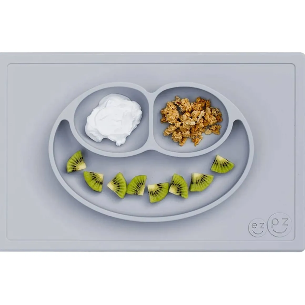 - Placemat + plate captures most of your kids’ messes