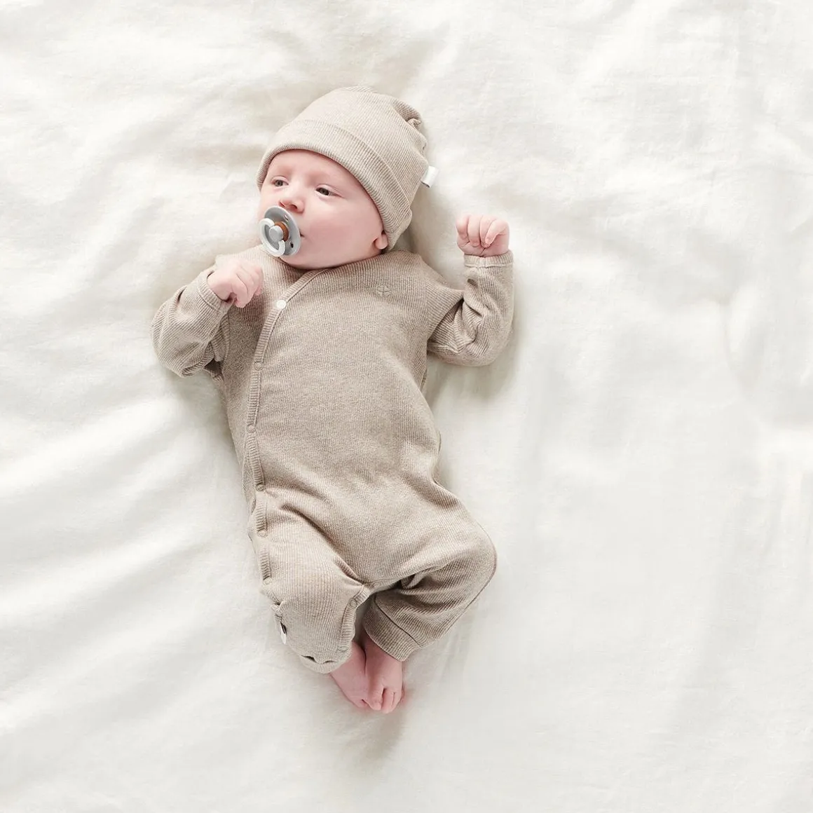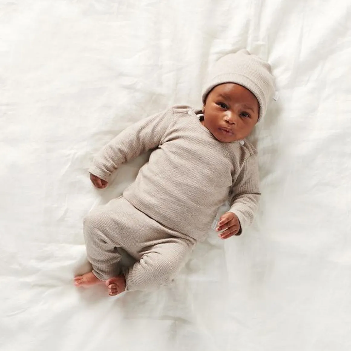 A hat is absolutely essential for the very littlest ones. This lovely ribbed hat from the Noppies Baby collection is ideal. This unisex hat has a somewhat wider fit, just like a beanie. Are you looking for a complete set? We also have a shirt and trousers in the same style. And the playsuit certainly comes highly recommended too! Prefer a different colour? No problem! The hat is made from GOTS-certified organic cotton. Not just super soft for your baby, but it also meets high international production and environmental standards.