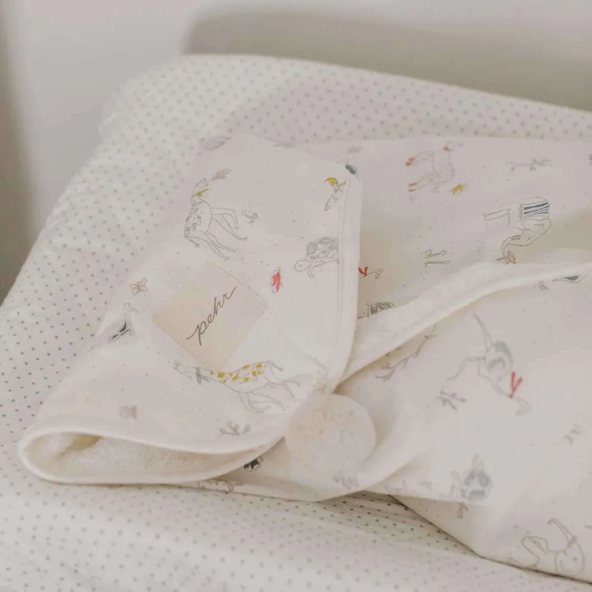 Warm up your little one post bath with Pehrs cozy Hooded Towels. Made from plush, absorbent French terry and backed with baby soft, brushed cotton, they make a perfect gift for the newest arrival.