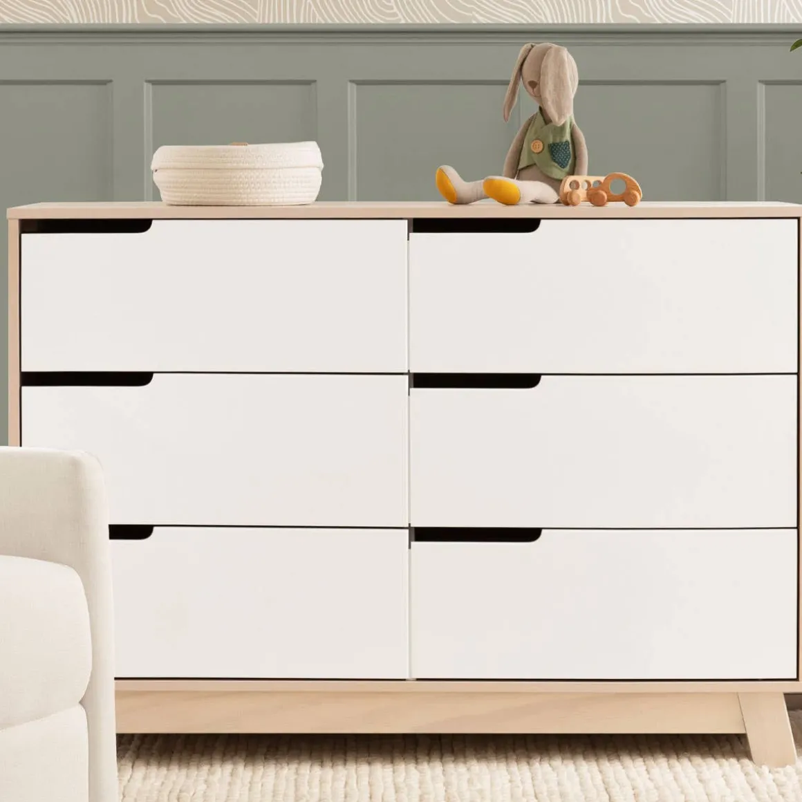 So many onesies, so little time… the babyletto Hudson 6-drawer Double Dresser is here to help! Designed with spacious smooth-glide drawers, hidden hardware, and an included anti-tip kit, this dresser arrives fully assembled, ready out of the box to keep your babe’s wardrobe neat and organized. The Hudson’s versatile design complements modern nurseries and pairs perfectly with the Hudson 3-in-1 Convertible Crib with matching turned out feet.