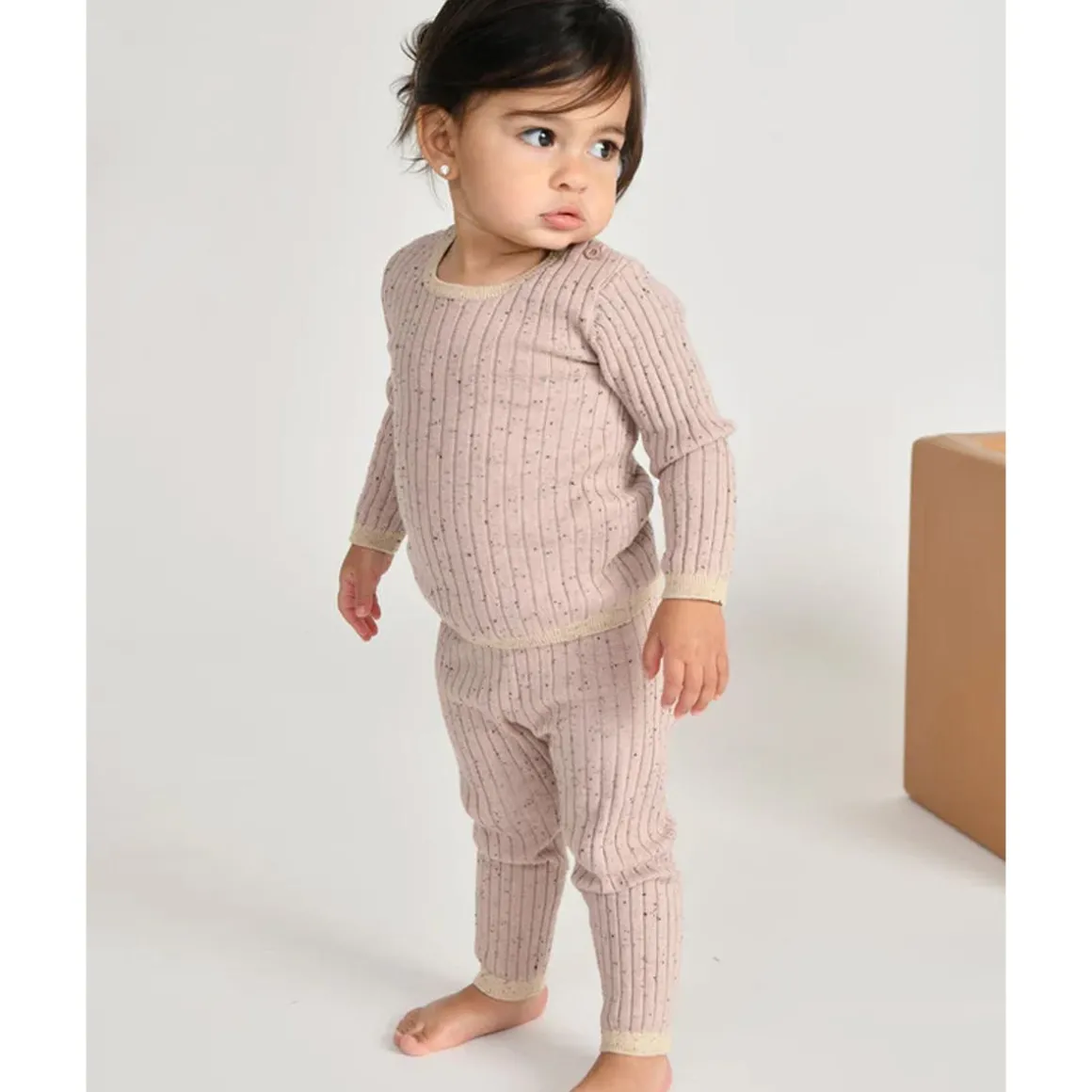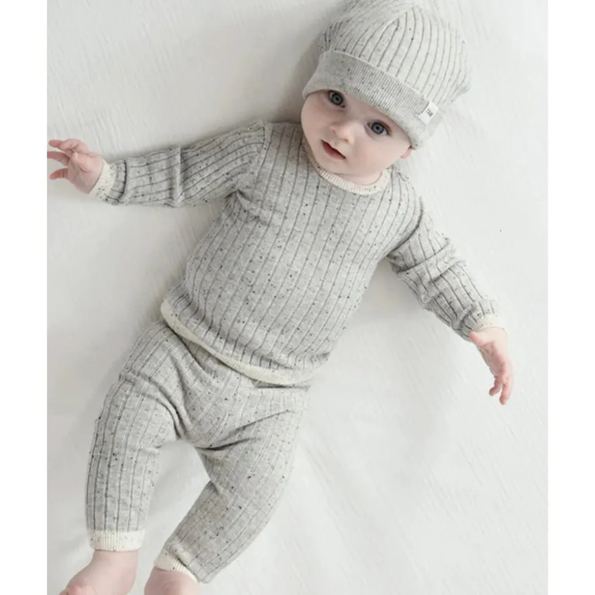 Wrap your little one in comfort with our Long Sleeve Top! Crafted from responsibly sourced BCI [Better Cotton Initiative], this retro-inspired top features a contrasted rim and speckled ribbed knit for a comfy touch. Designed with shoulder buttons for the head to easily pass through the opening, there will be no tugging. Perfect for ages 0-24 Months, the breathable and versatile top can be worn anytime, anywhere. It’s the long sleeve you’ve been waiting for. Make it a set with the matching Hug Me bottoms. Where every stitch is a HUG for your little ones!