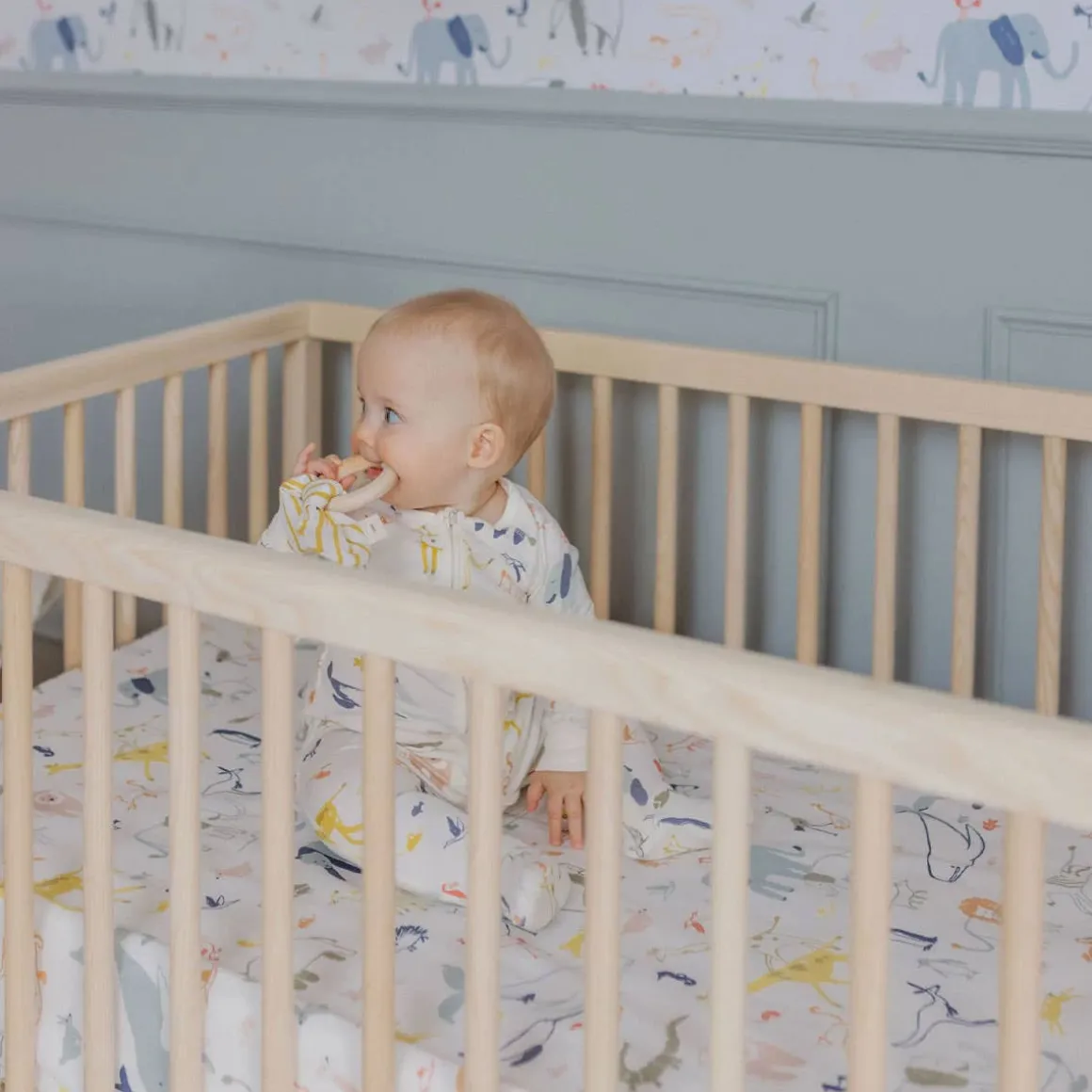 Crafted in brushed organic cotton, this breathable and soft crib sheet will give your little one the perfect night’s sleep. Designed to ensure a safe snug fit, Pehr baby crib sheet fits cots and mattresses up to 52″ x 28″ x 8″ and stay soft wash after wash.