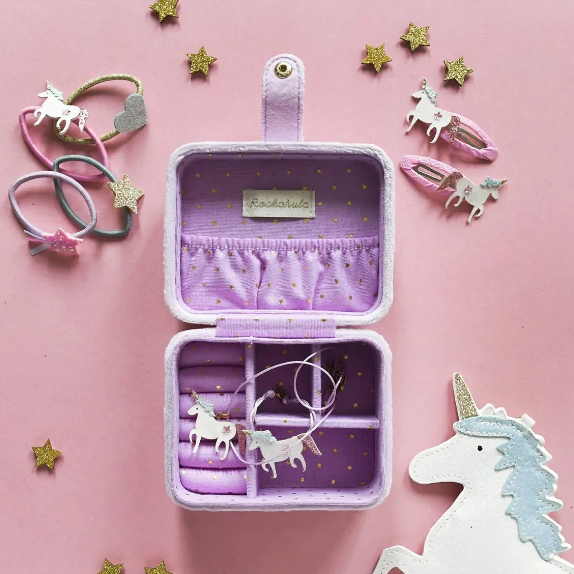 Featuring an embroidered unicorn and shimmering stars on Unicorn Jewellery Box