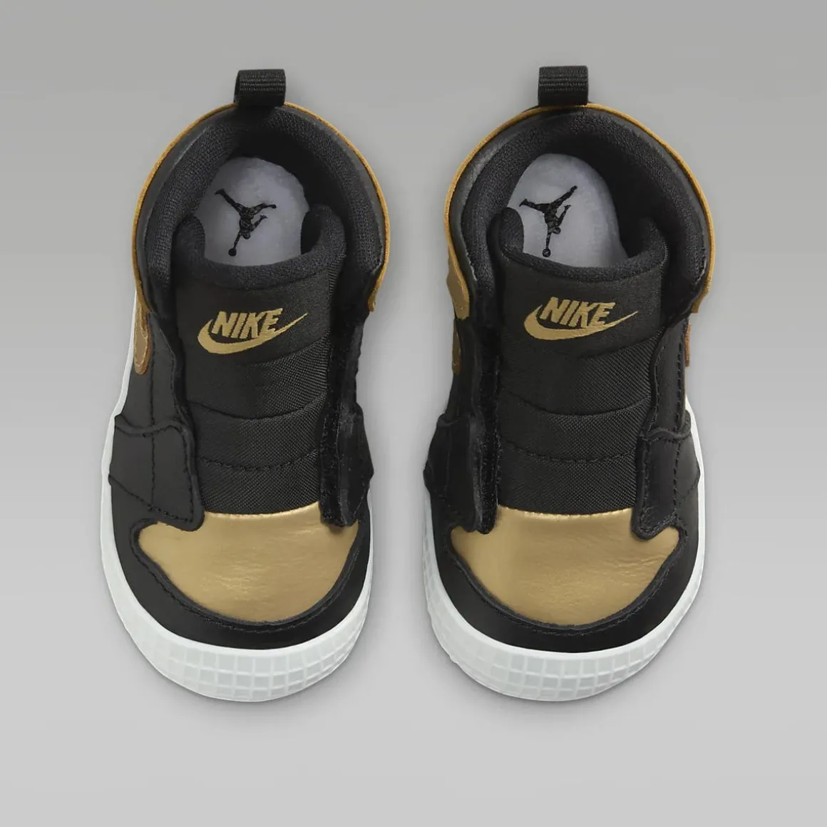 - Heritage Design meets flexible comfort: With a simple hook-and-loop side closure, the Jordan 1 Bootie provides secure support while still being easy to get on and off. A flexible sole delivers lightweight, cushy comfort.