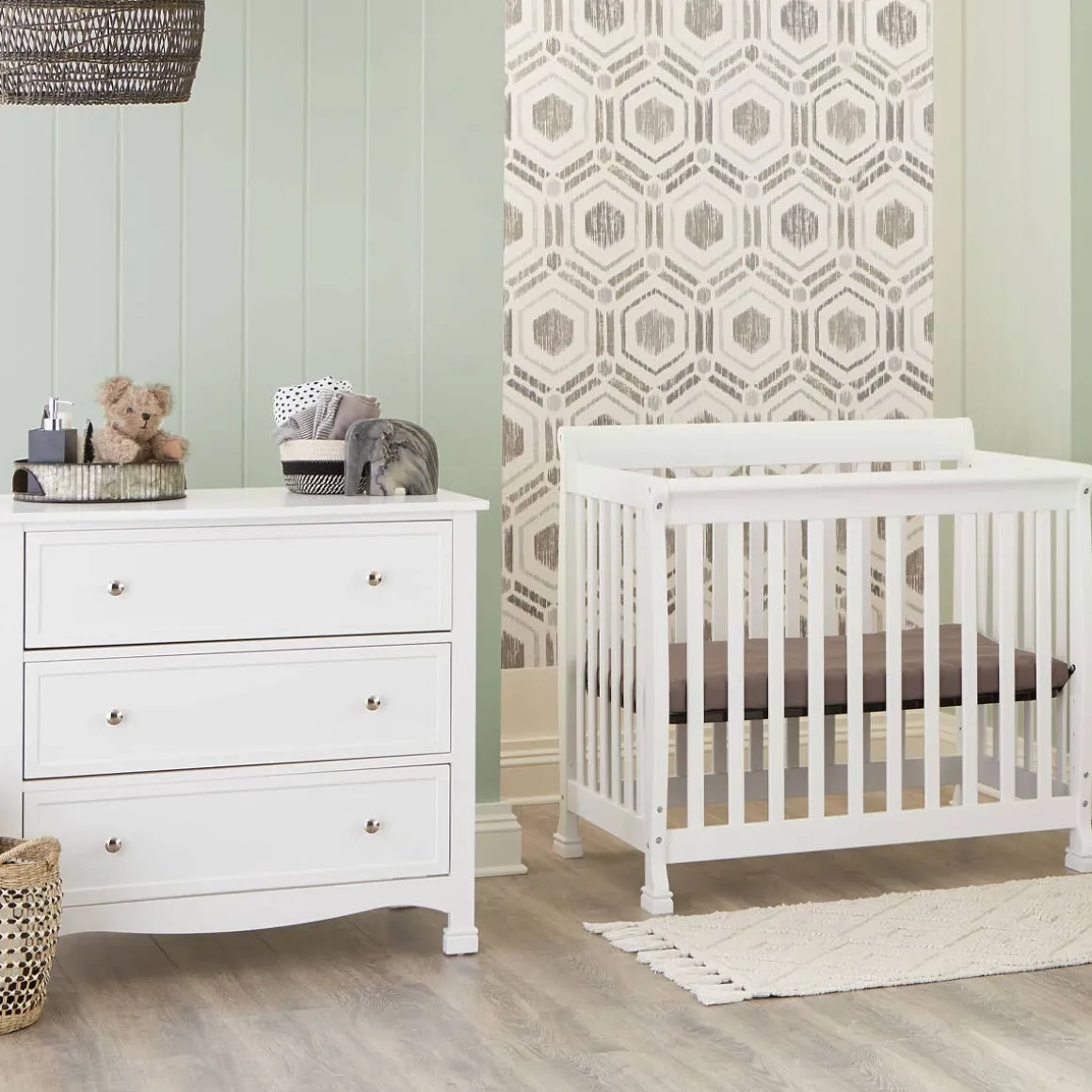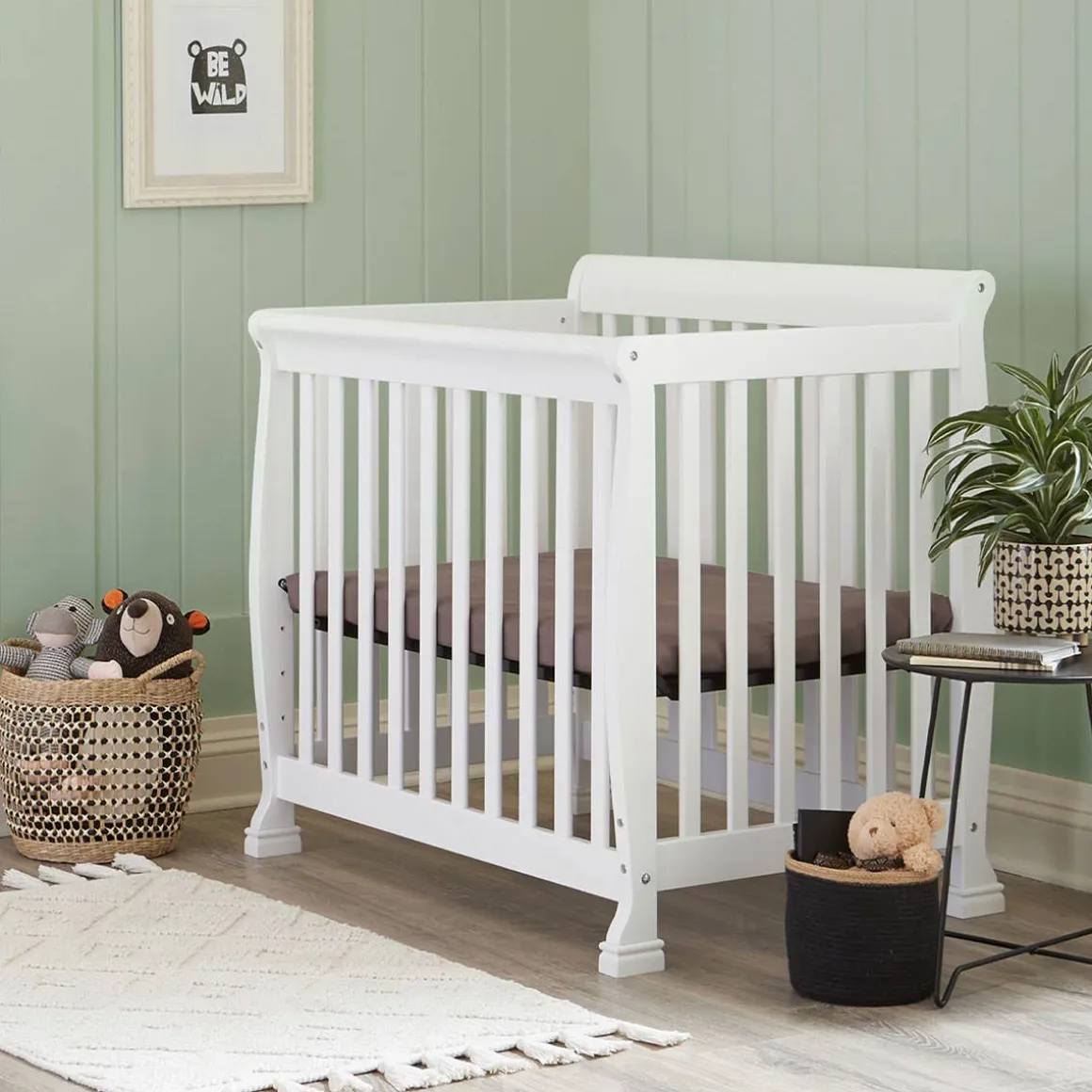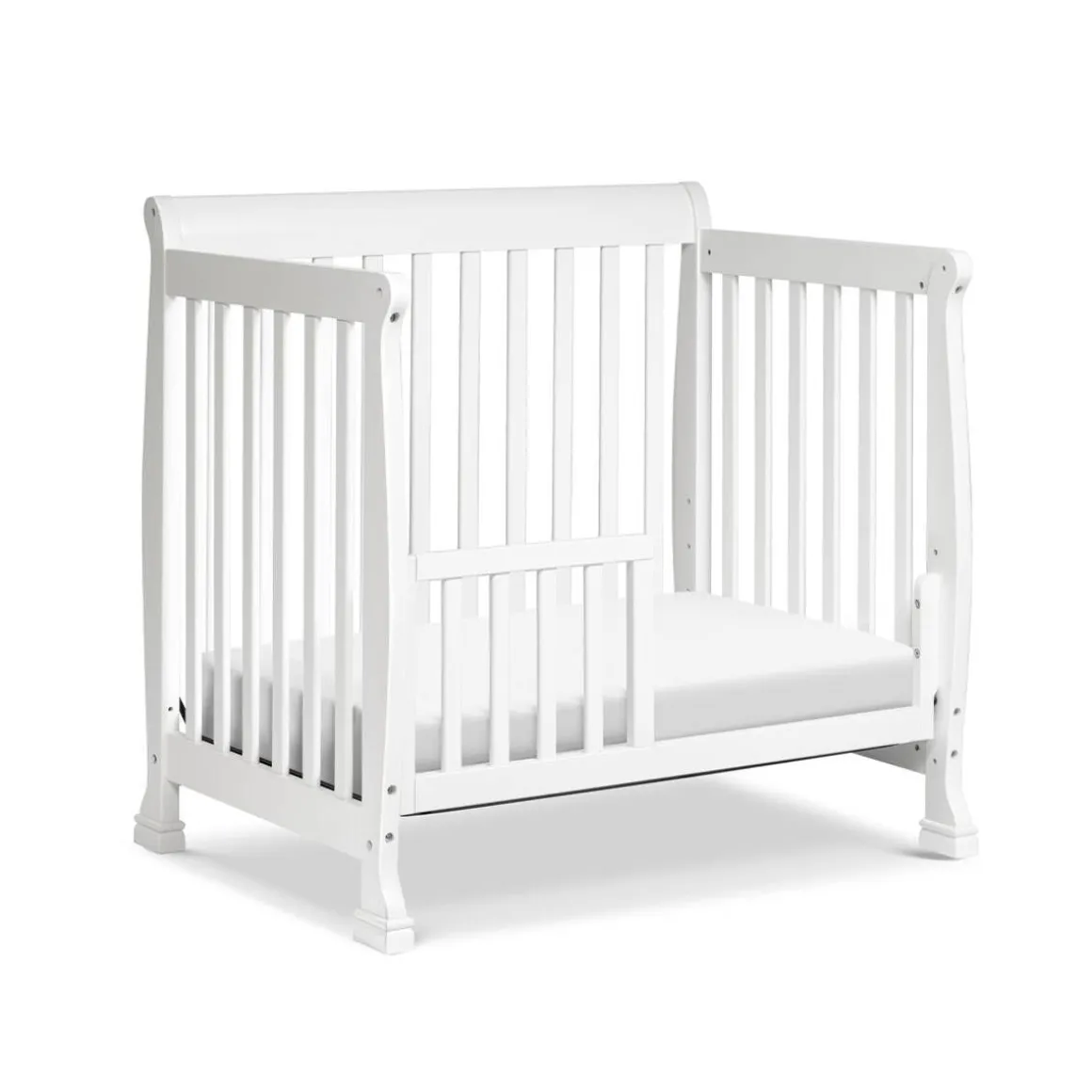 The Kalani Mini Crib is elegance, durability and reliability. Mirroring the Kalani 4-in-1 Crib’s timeless design, the Kalani Mini Crib features soft, subtle curves and the same lifetime functionality. Four mattress levels allow you to adjust the mattress height to your child’s growth. Beyond the nursery years, the Kalani Mini Crib conveniently becomes a beautiful mini toddler bed, daybed, and twin-size bed (conversion kits sold separately).